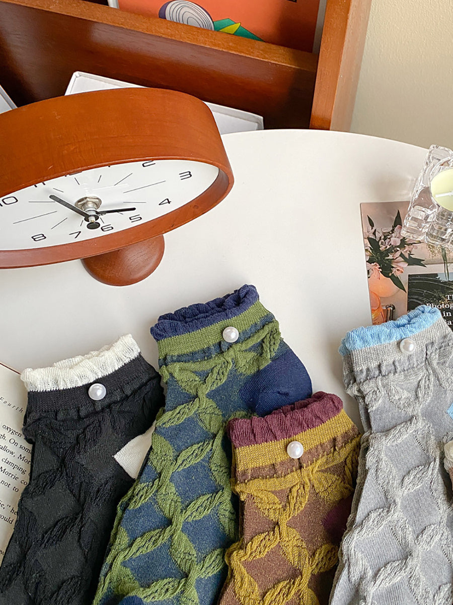 5 pares de meias femininas de algodão com losangos Artsy Colorblock