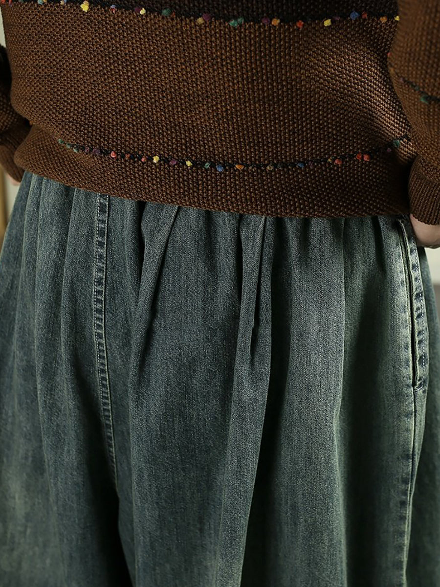 Calça jeans feminina vintage de pernas largas para a primavera