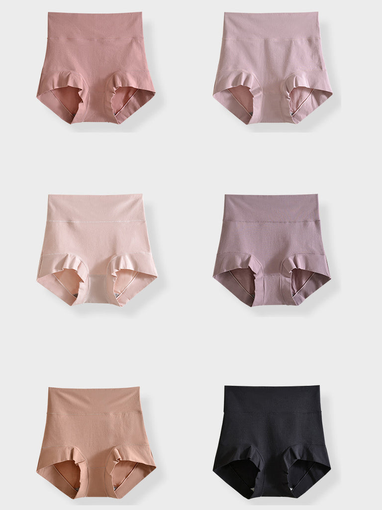 6 peças de roupa íntima feminina de cor pura de cintura alta