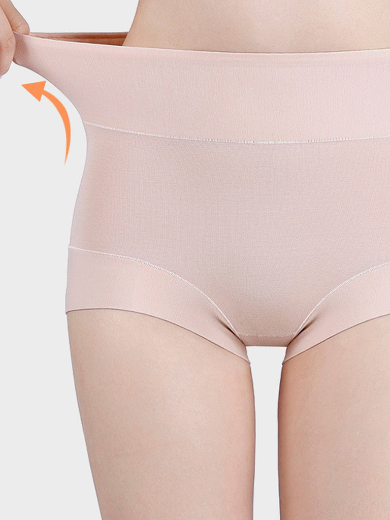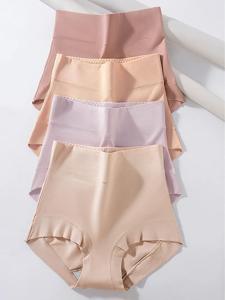 Conjunto de 4 peças de calcinhas femininas de cintura alta em cor lisa.