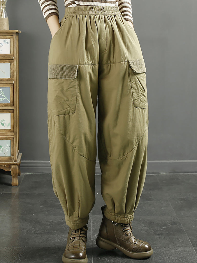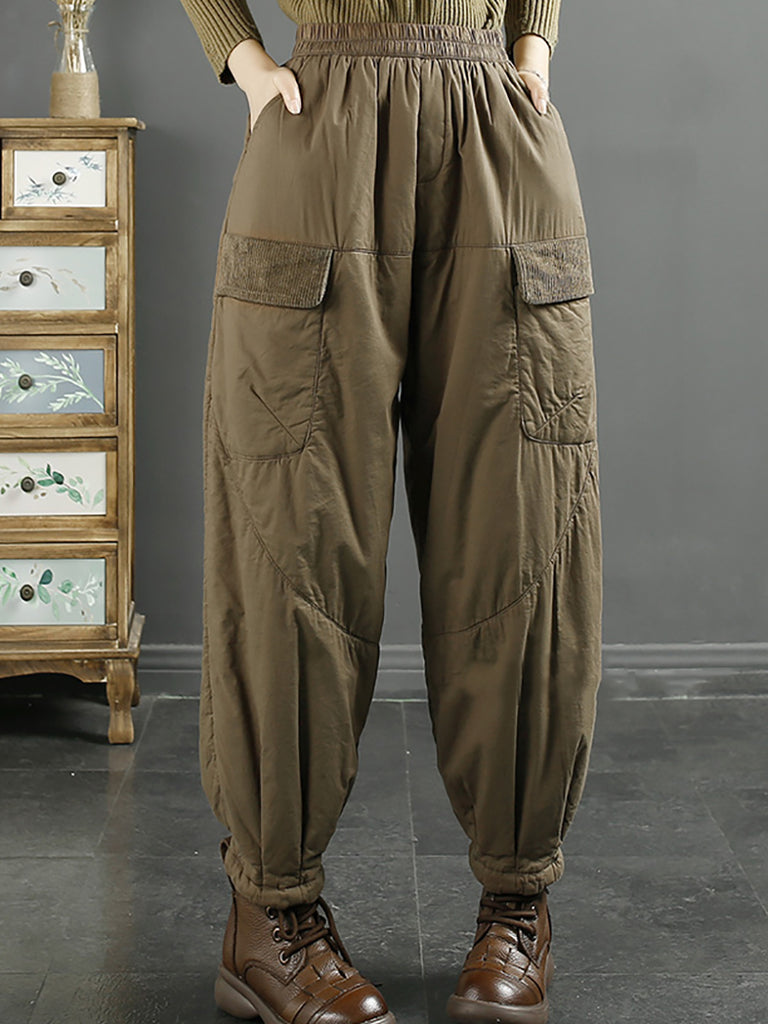 Plus size feminino vintage sólido emendado acolchoado harem Calças