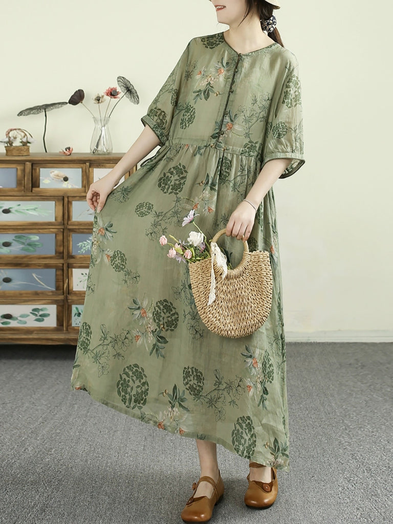 Camisa feminina de verão Artsy Pure Color com gola redonda e rami
