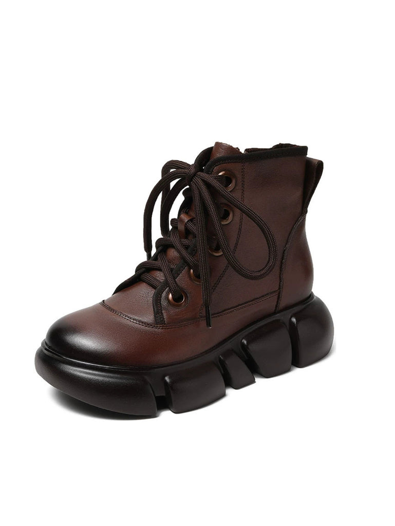 Botas Martin de plataforma de couro de cor pura para mulheres