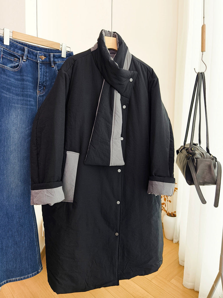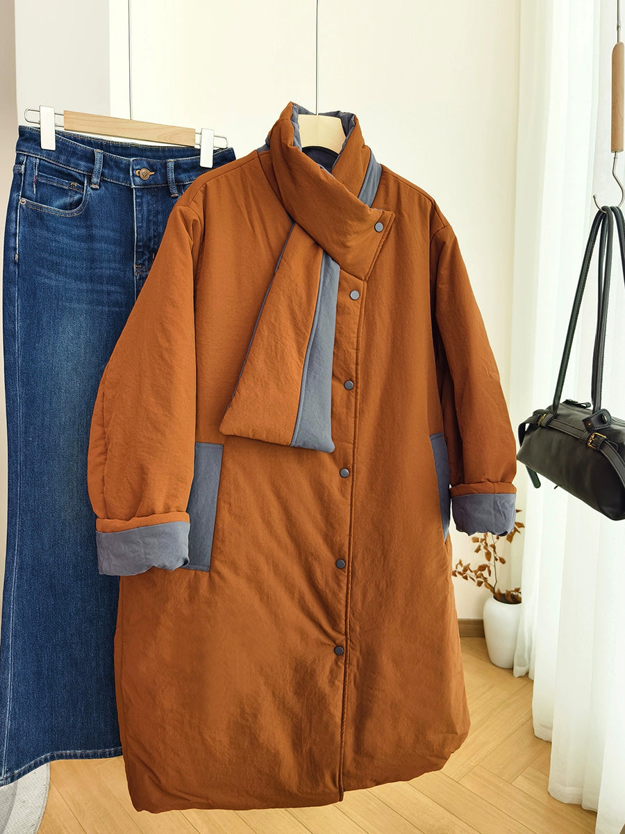 Casaco acolchoado feminino de inverno em cor lisa com gola dobrável.