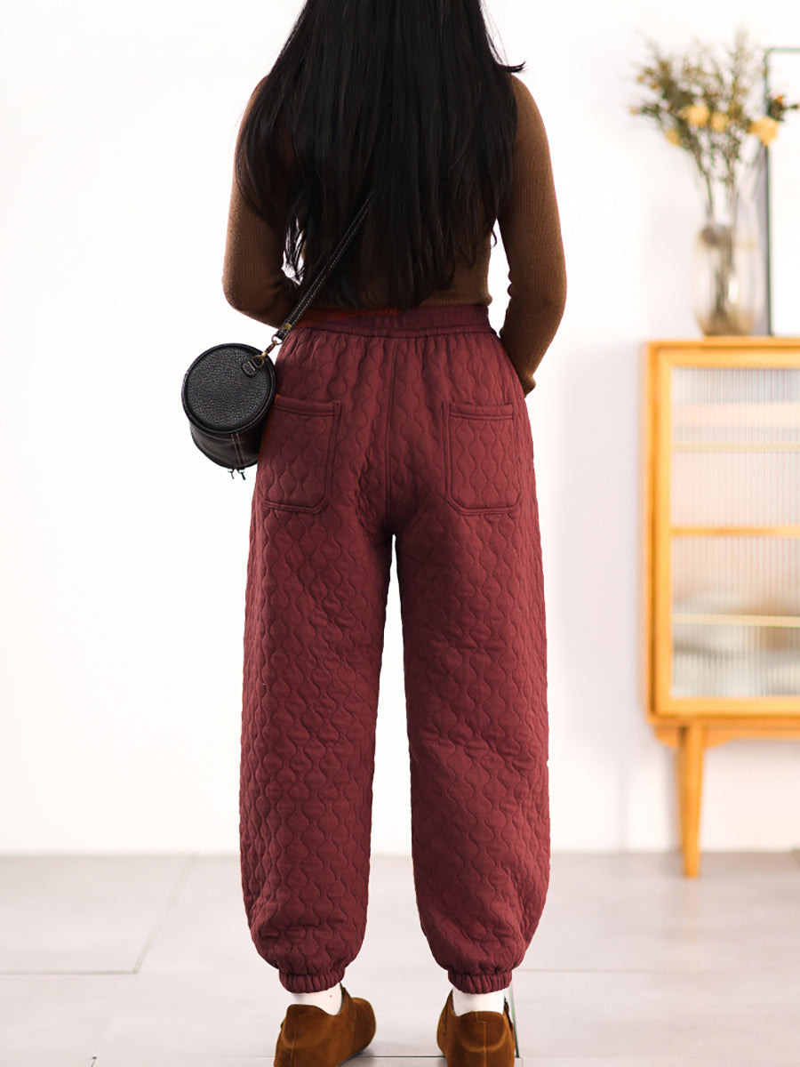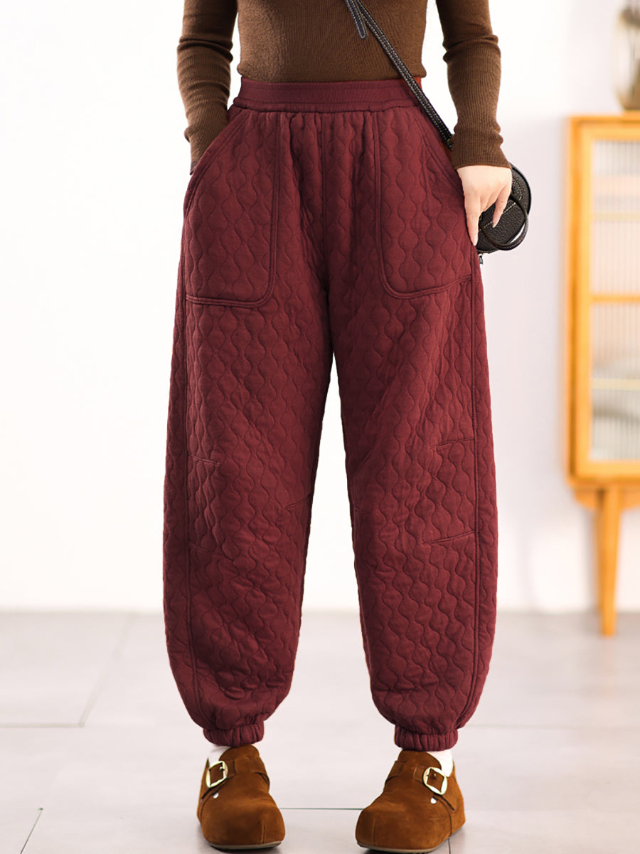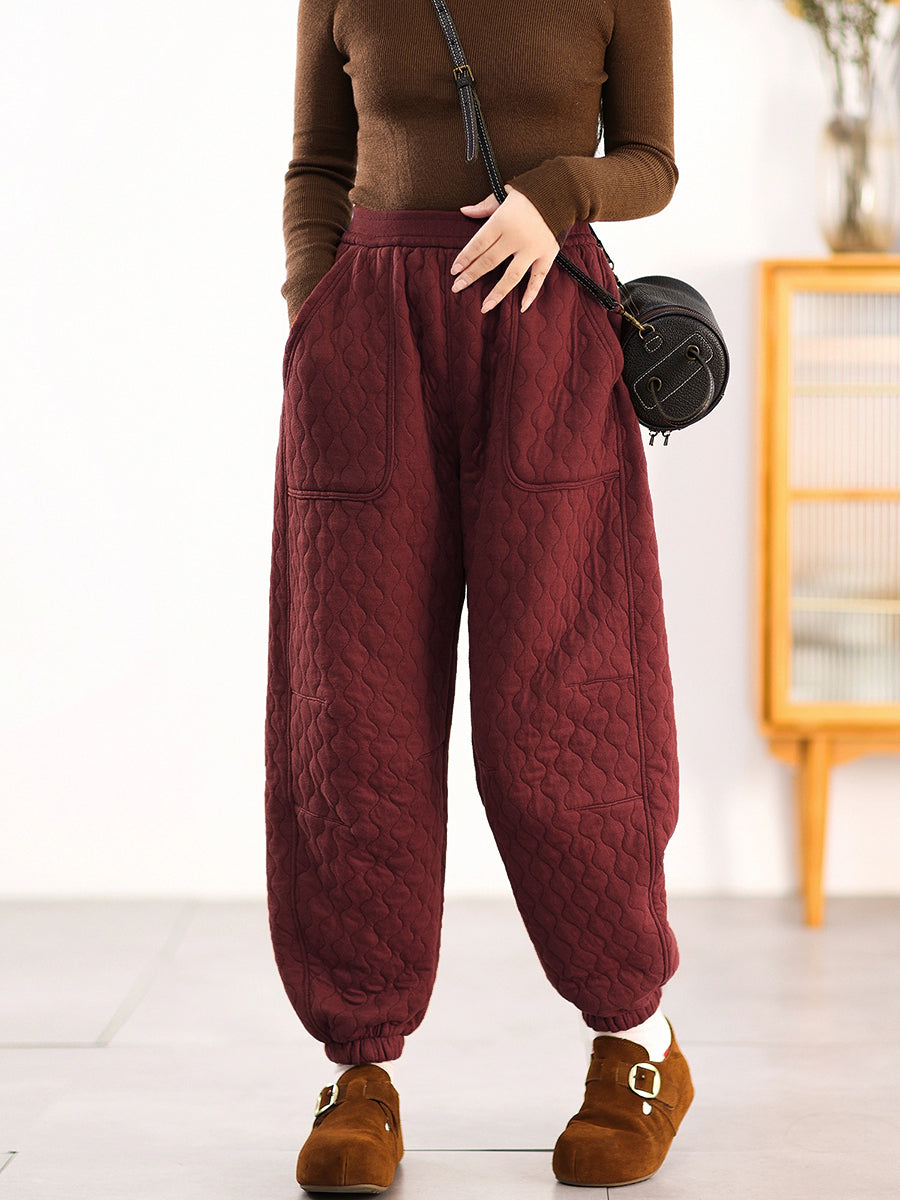 Calça Harem Feminina Casual de Inverno em Cor Lisa com Acolchoamento