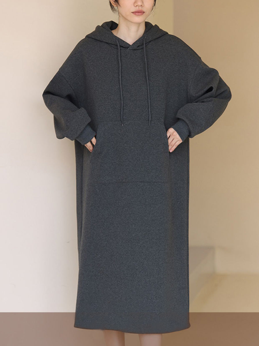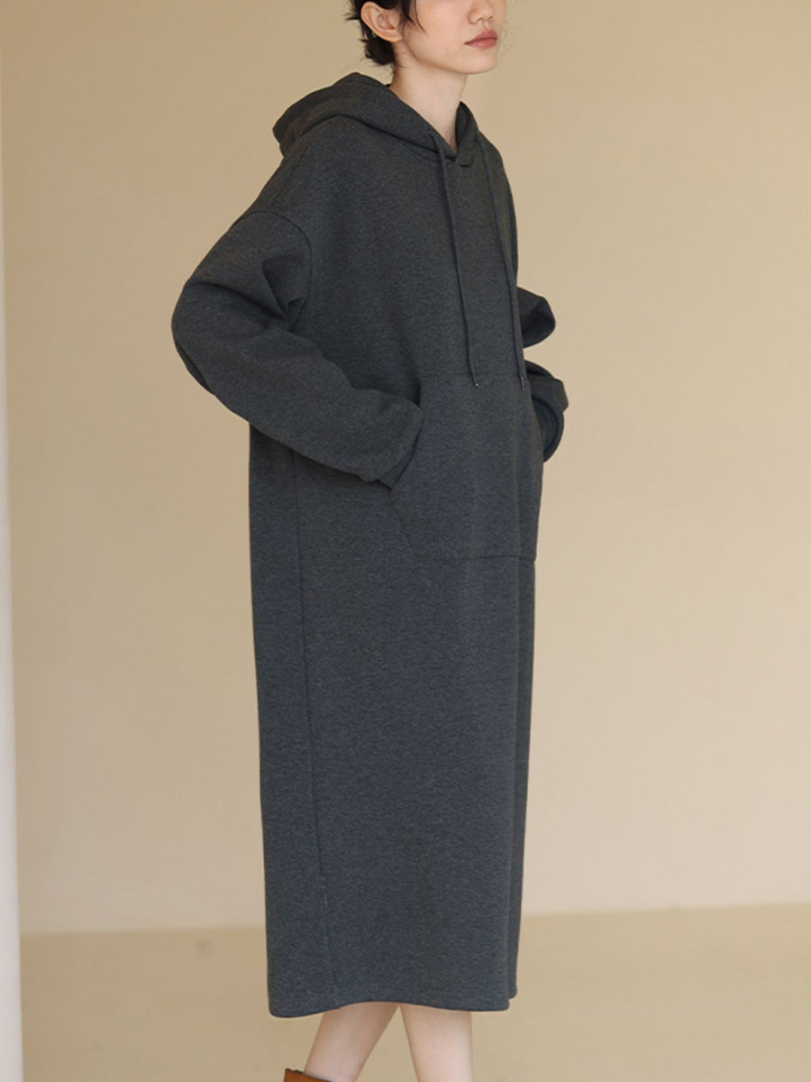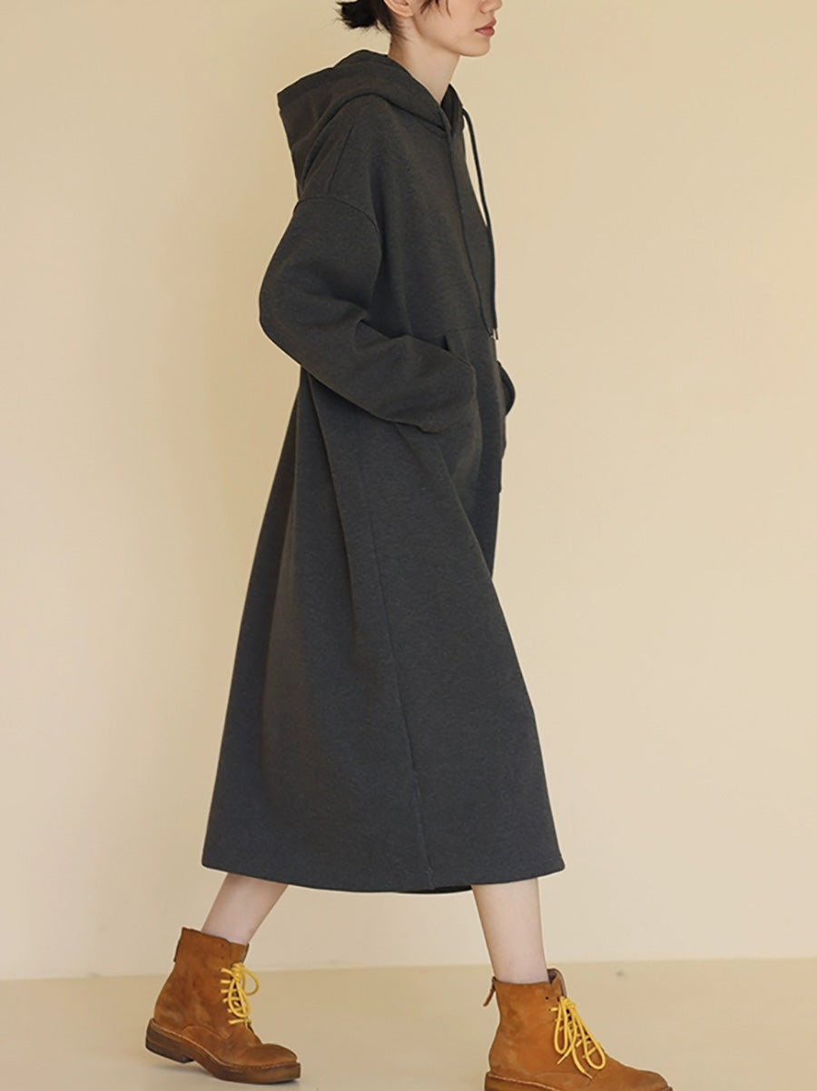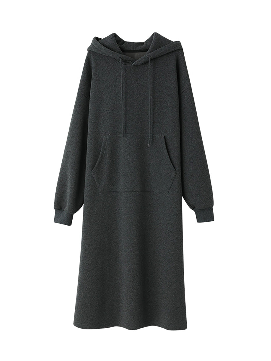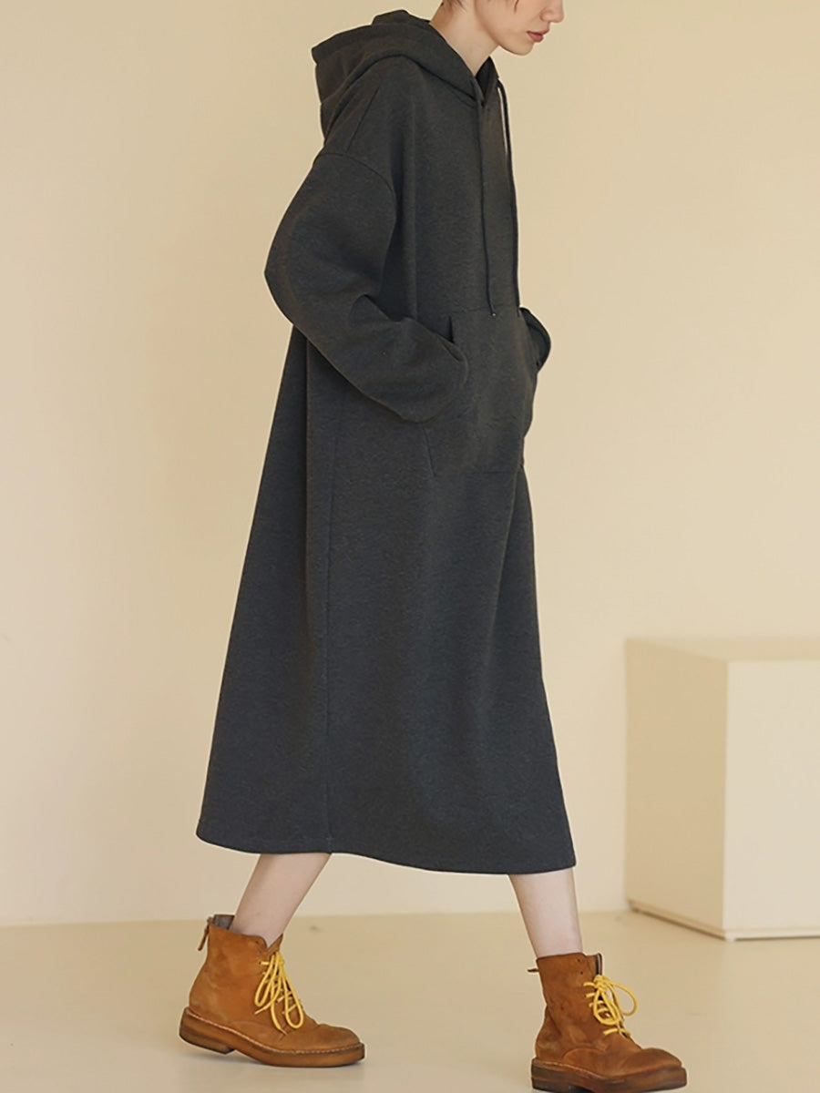 Vestido longo feminino casual de outono com capuz em cor lisa