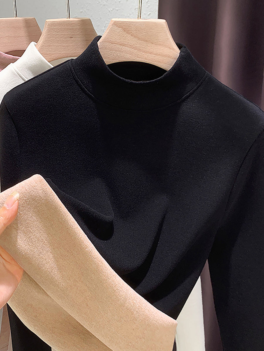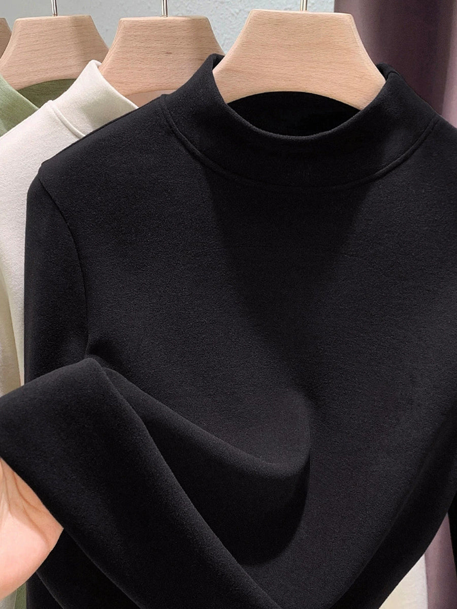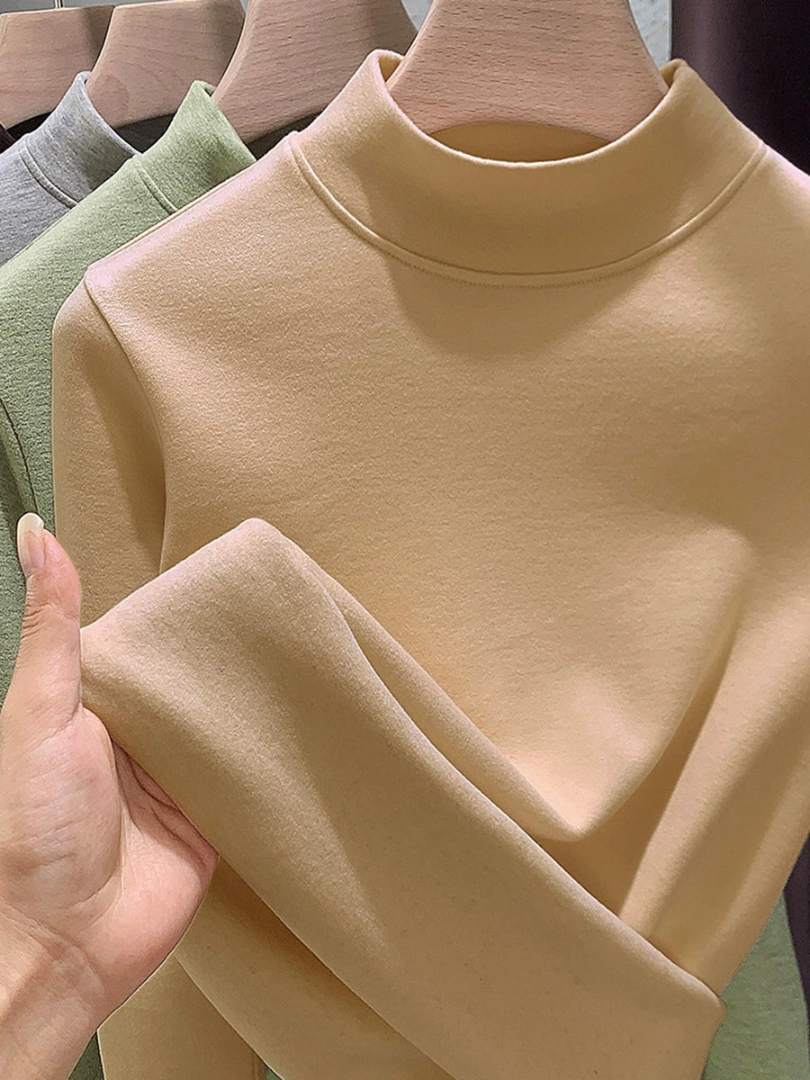 Blusa feminina casual de outono em cor lisa com gola alta.