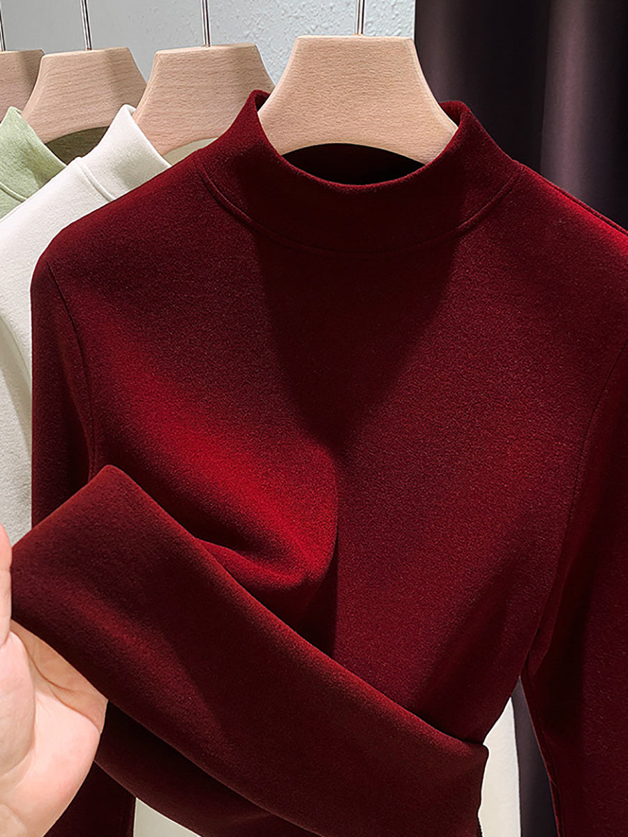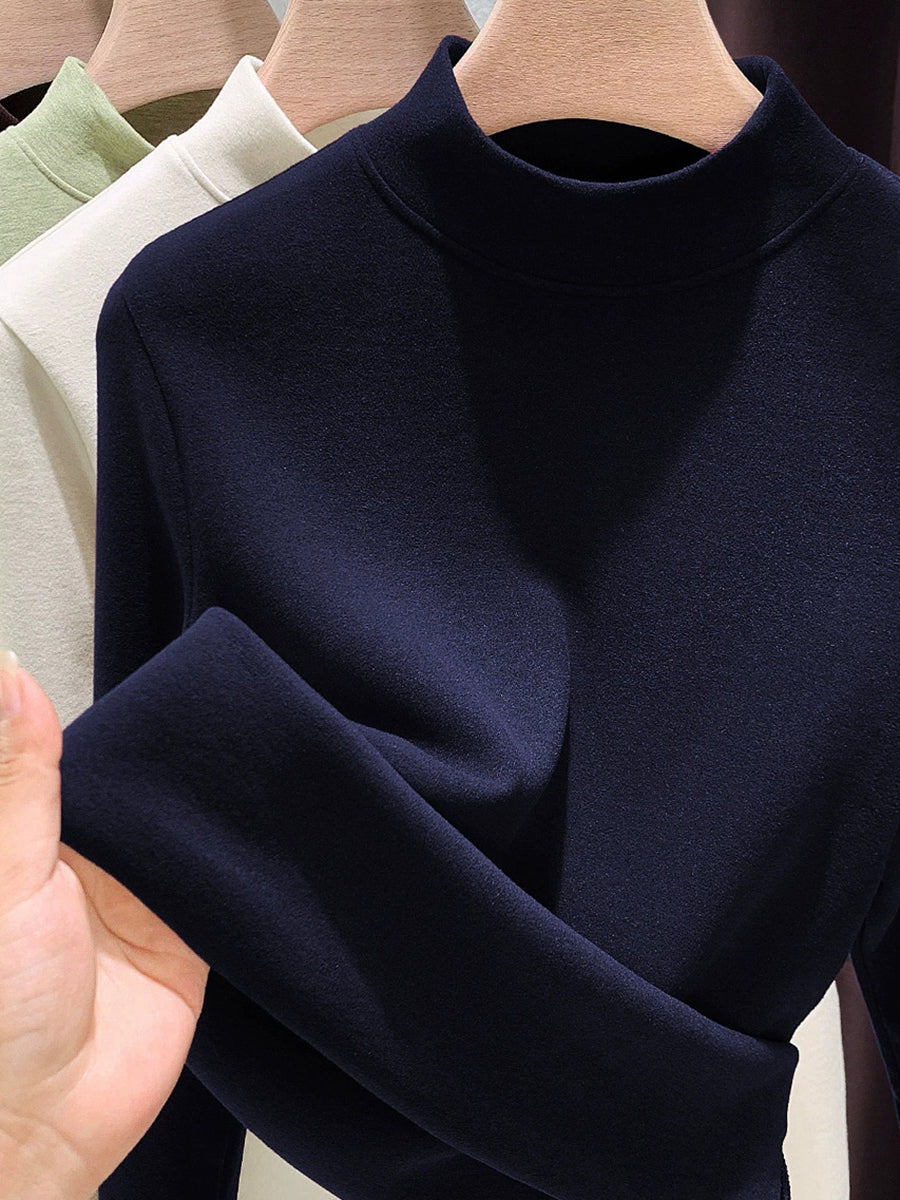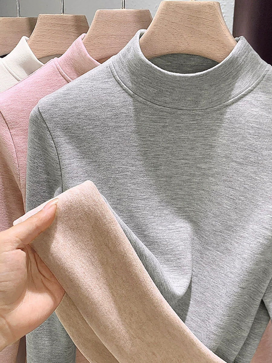 Blusa feminina casual de outono em cor lisa com gola alta.