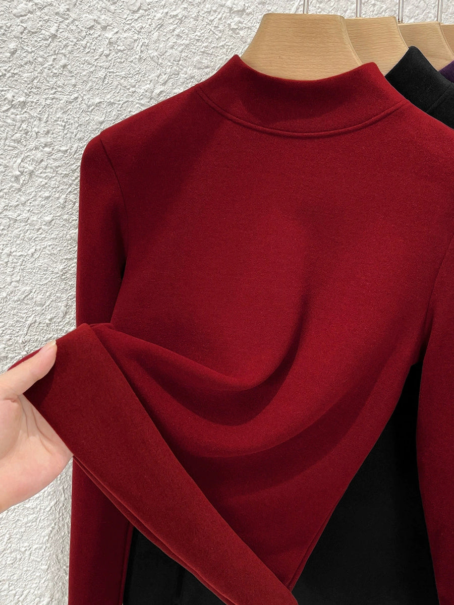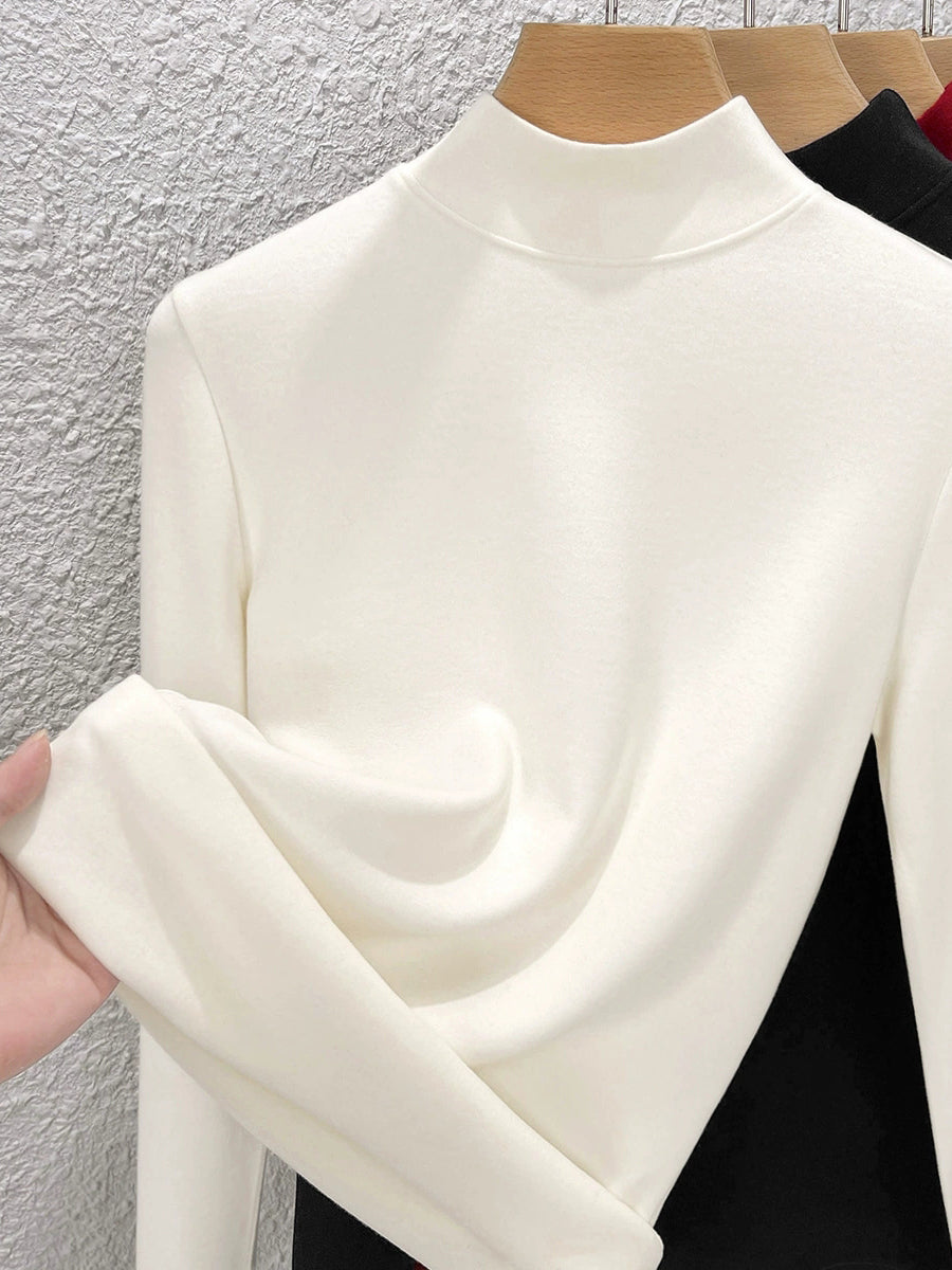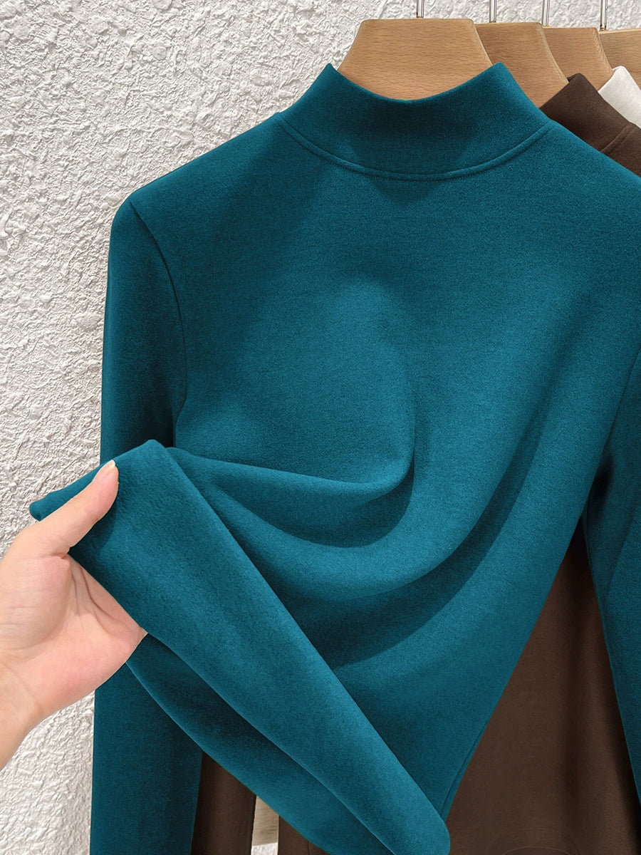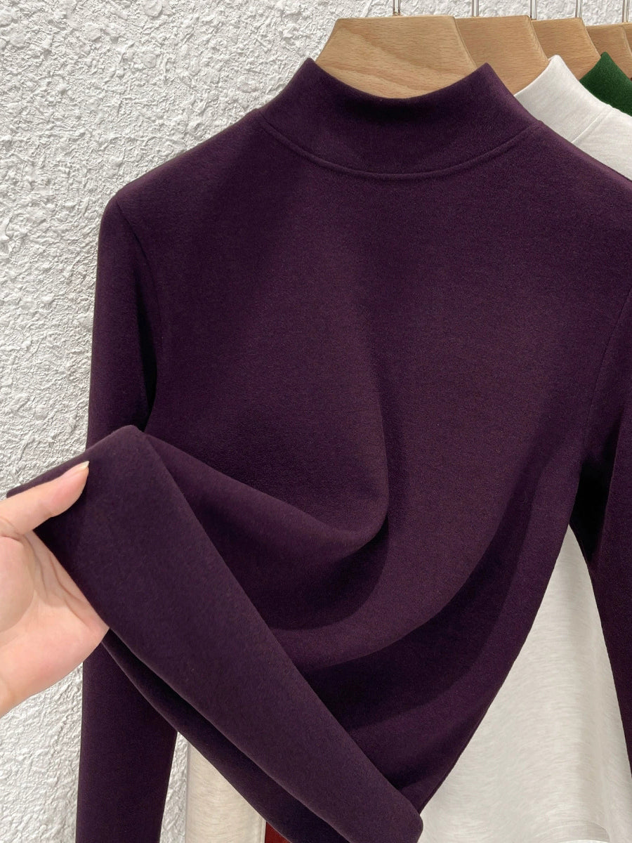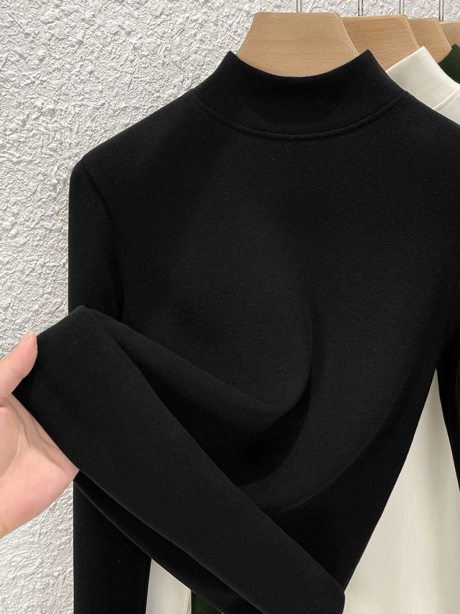 Blusa feminina de inverno de cor lisa com gola alta até a metade da coxa.