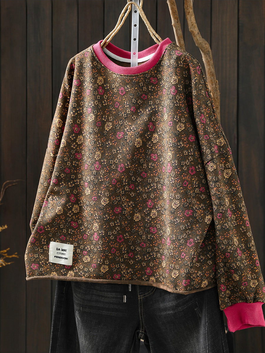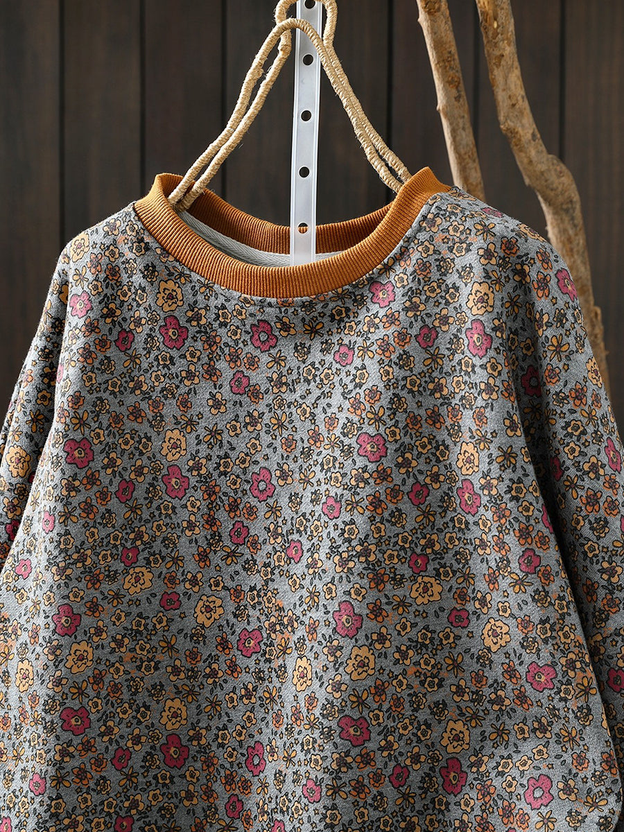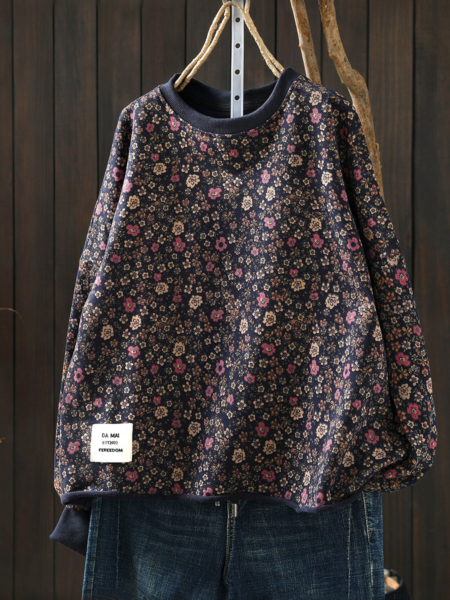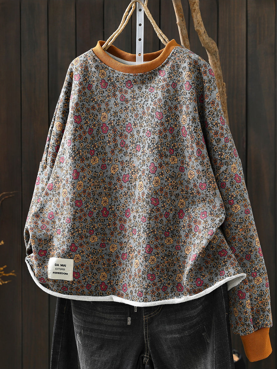 Blusa feminina Artsy Spring Floral com decote redondo, 100% algodão.