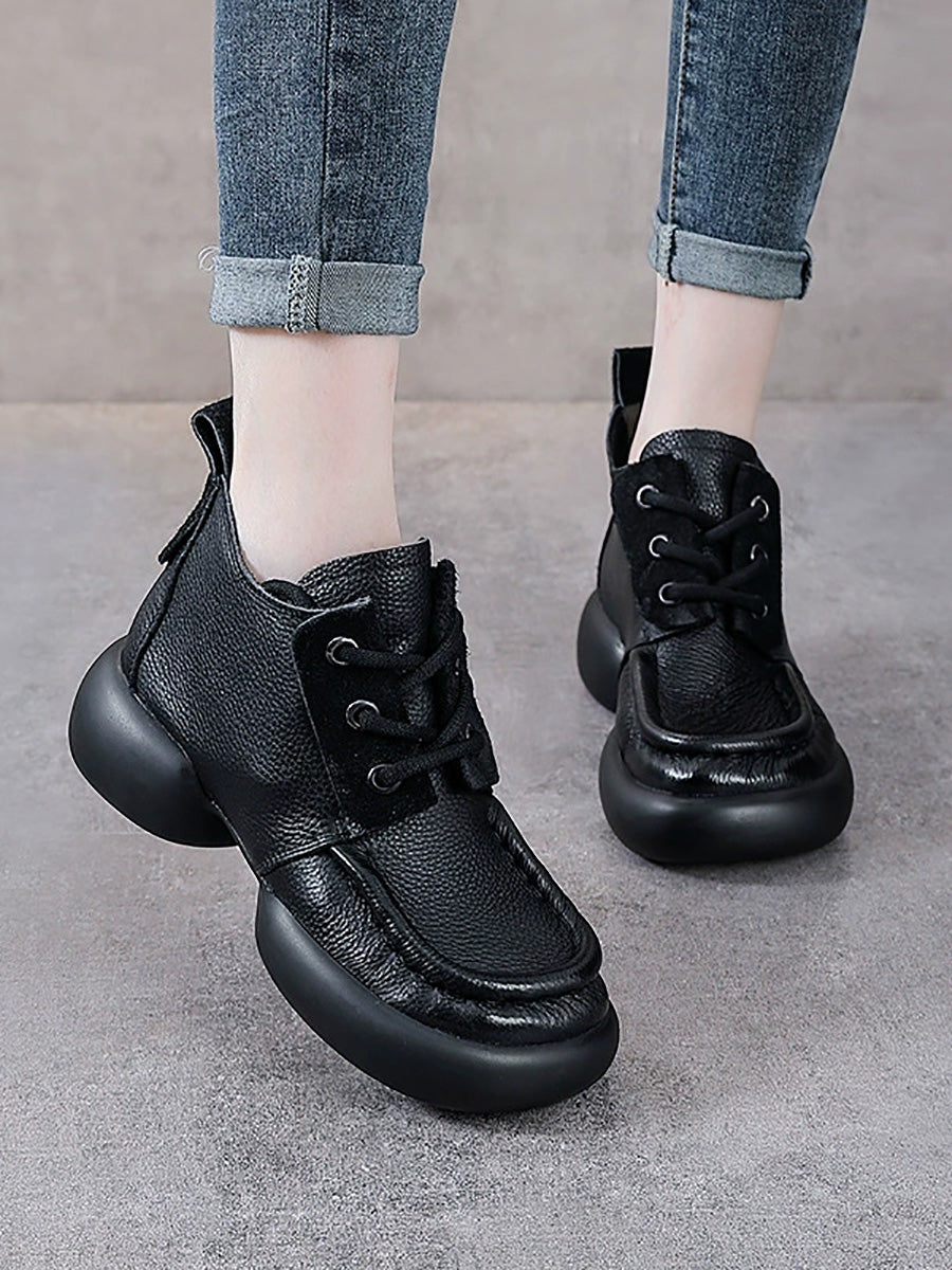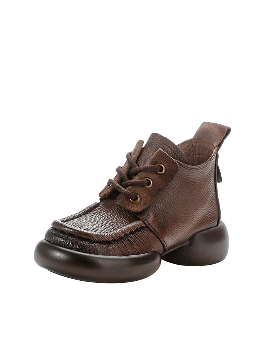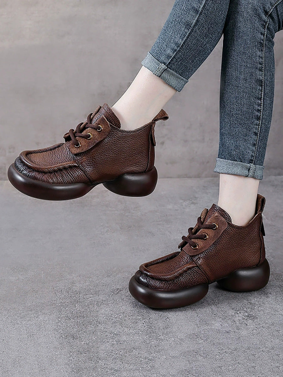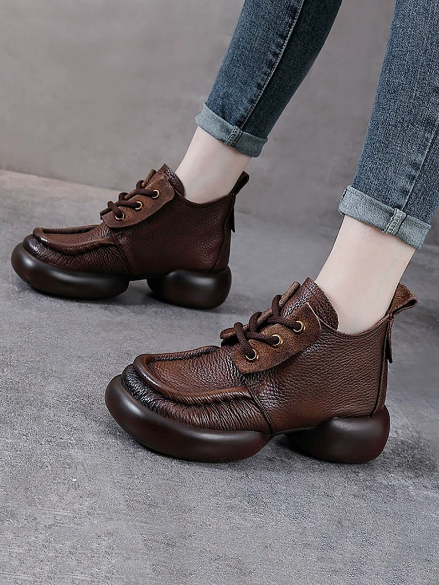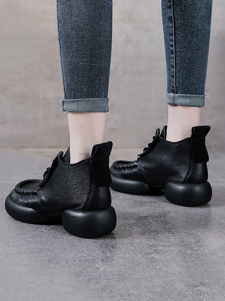 Botas de cano curto femininas retrô em couro legítimo com plataforma