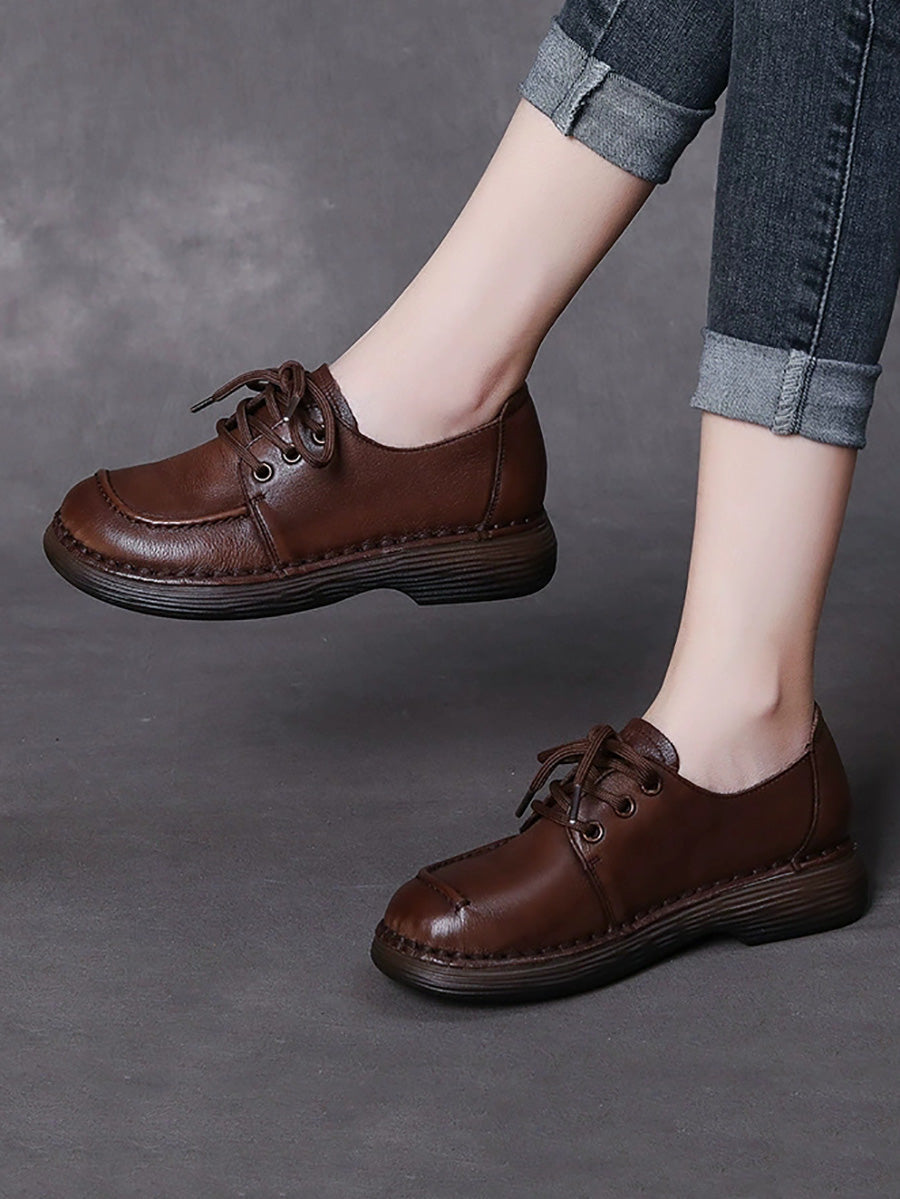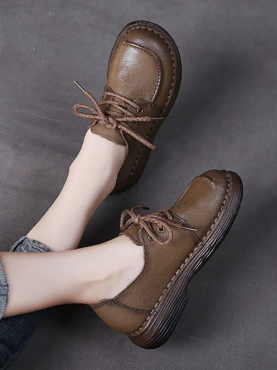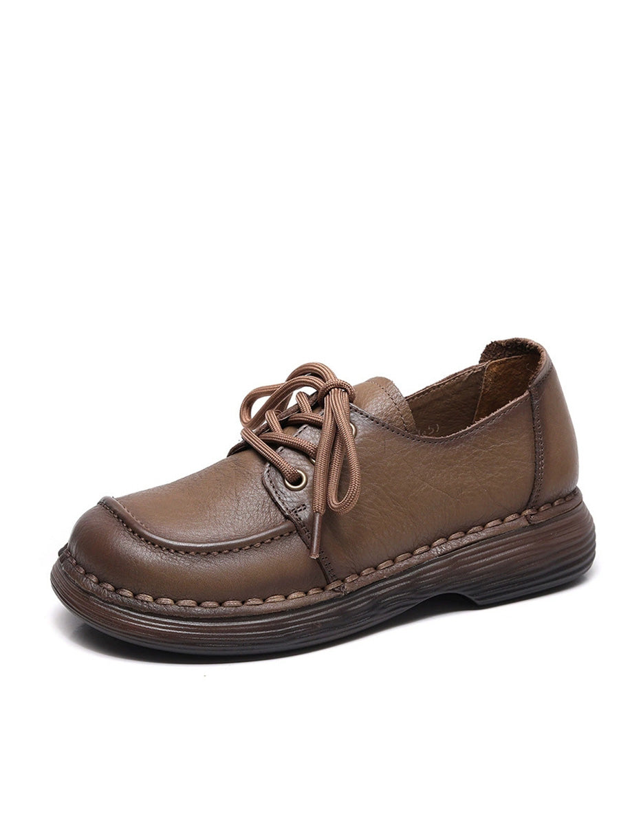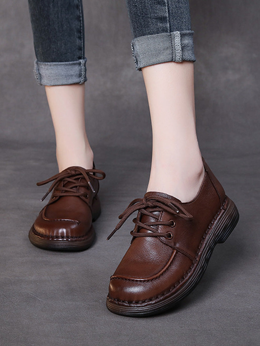Sapatos femininos de primavera em couro legítimo de cor lisa.