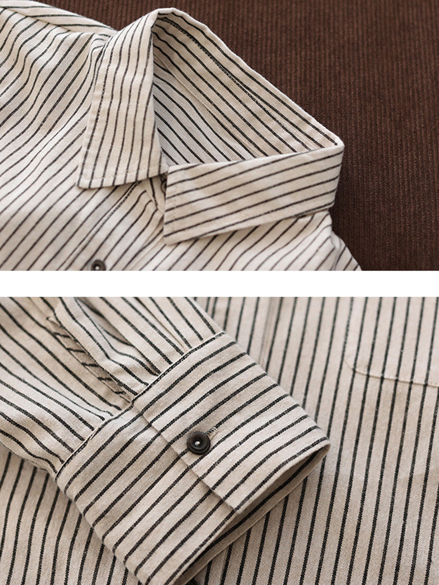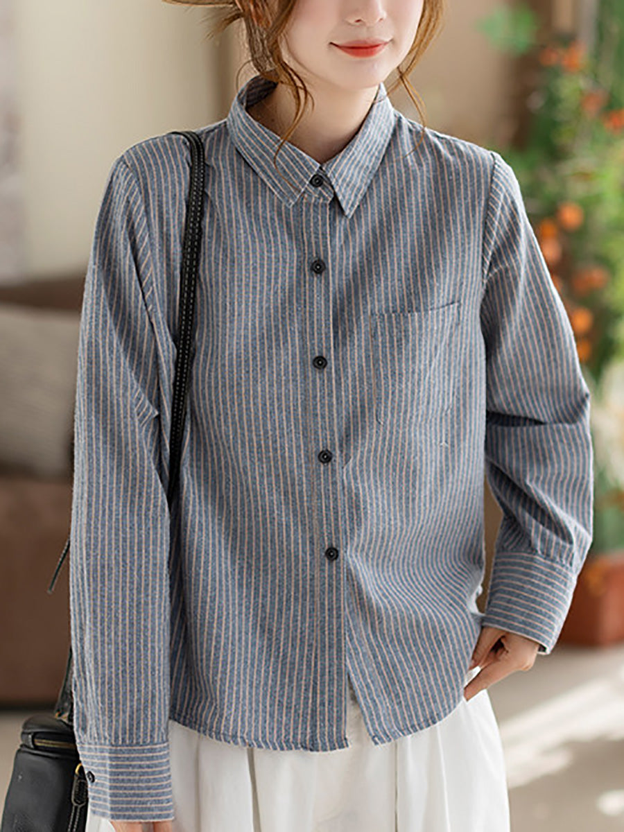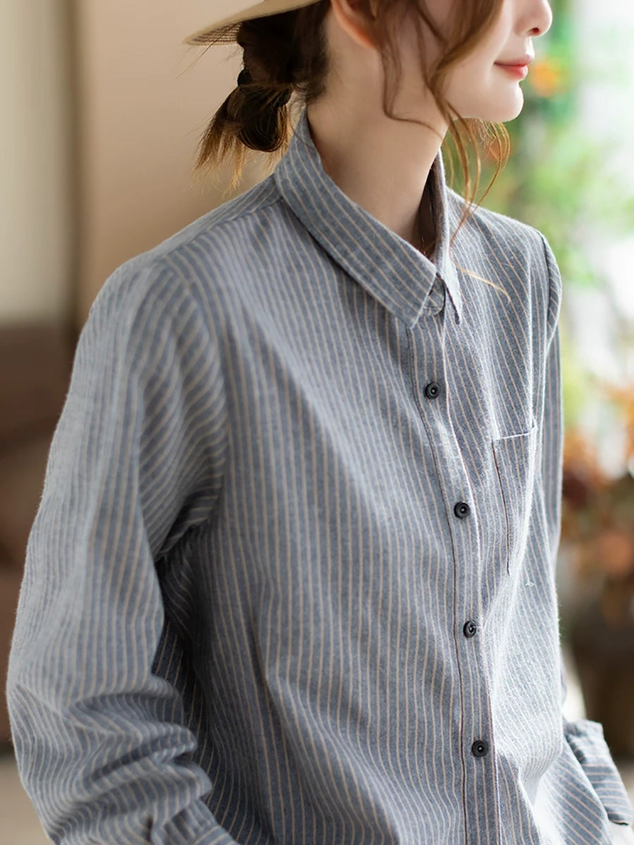 Camisa feminina de algodão listrada com estilo artístico para a primavera