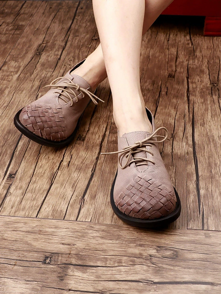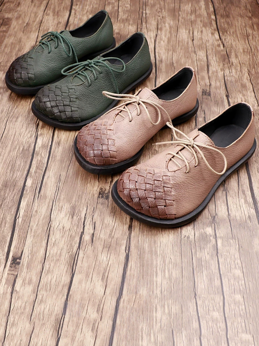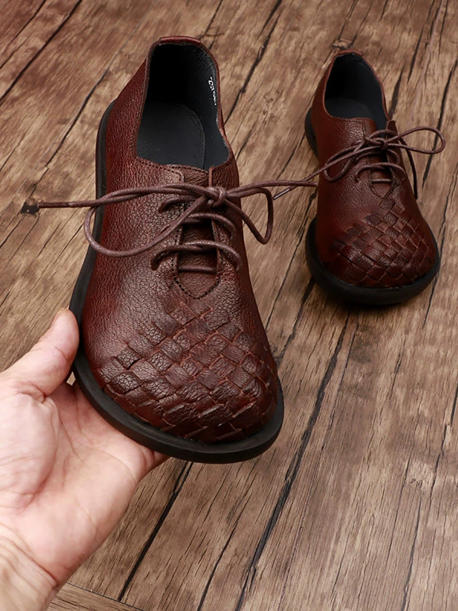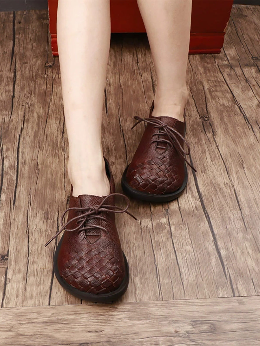 Sapatos femininos vintage de couro legítimo trançado.