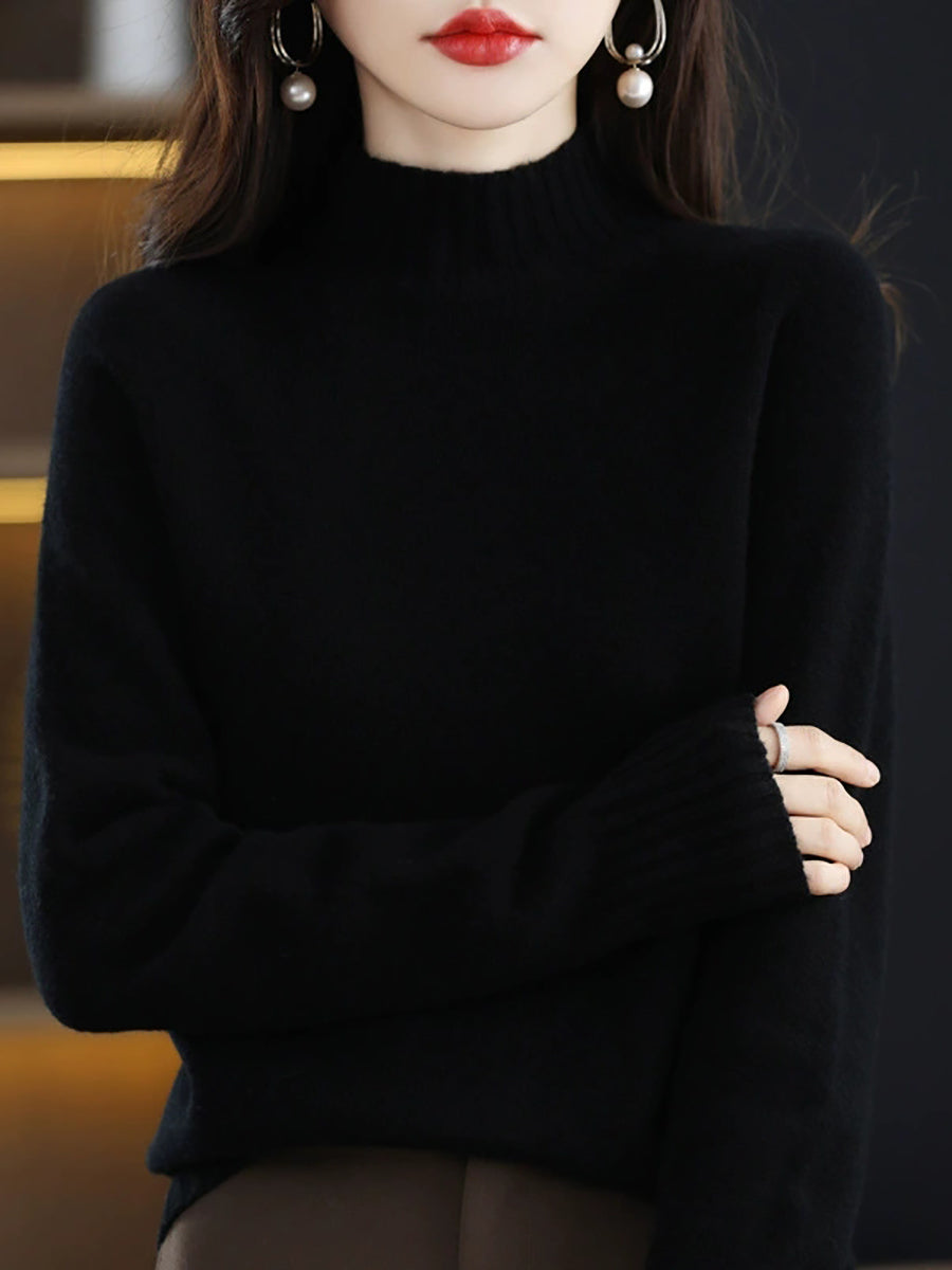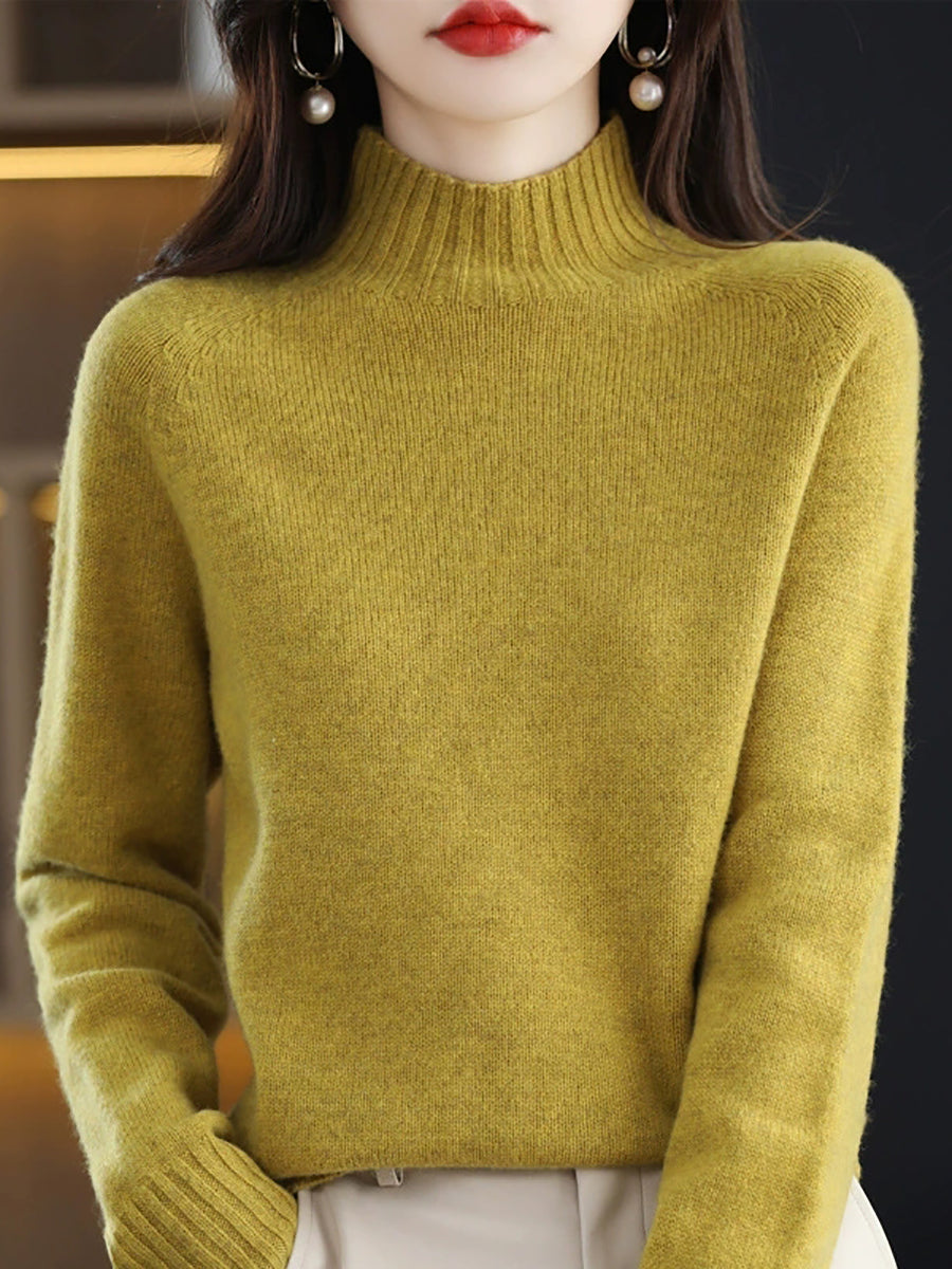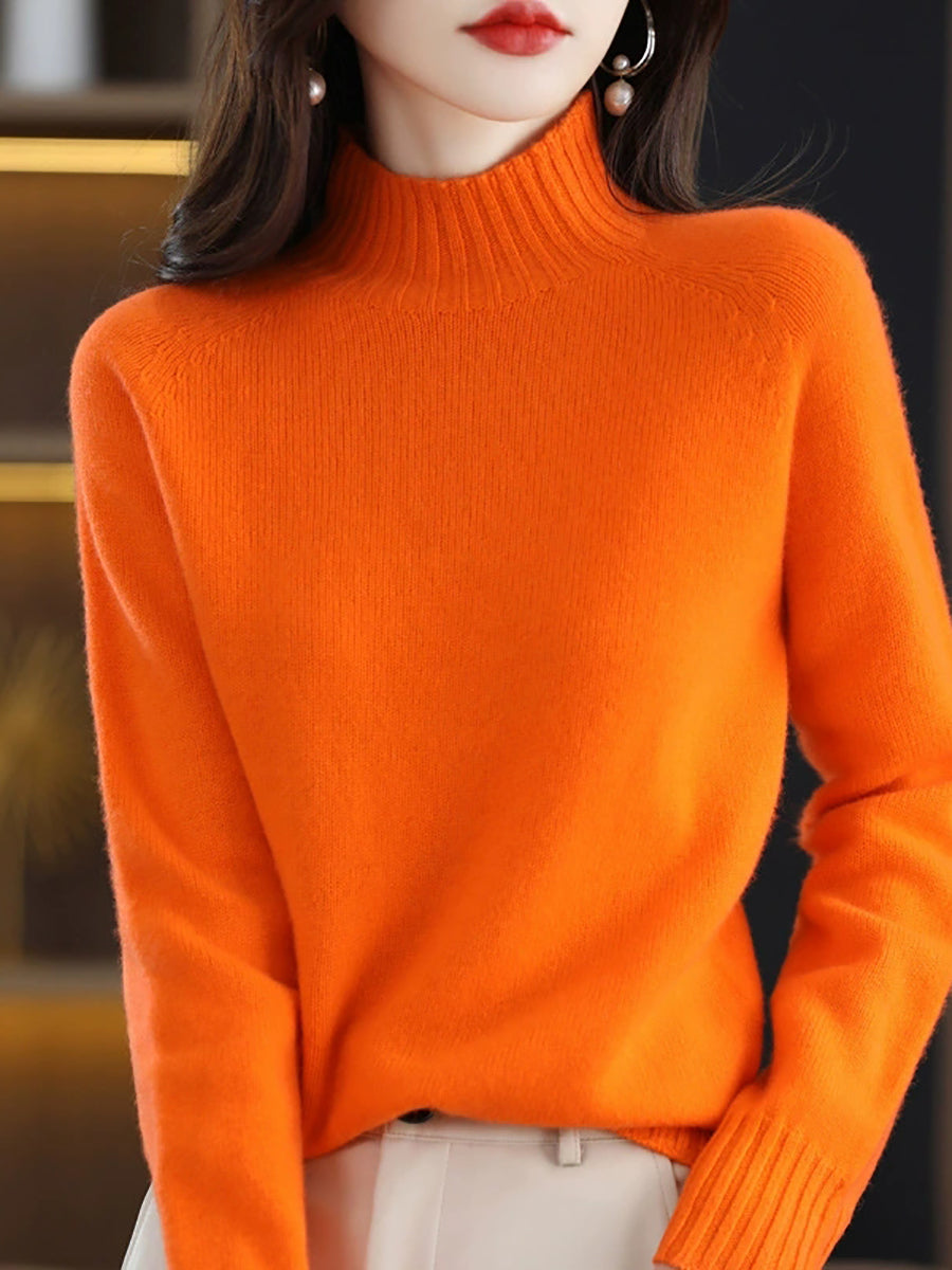 Suéter feminino casual de gola alta e cor lisa para a primavera.