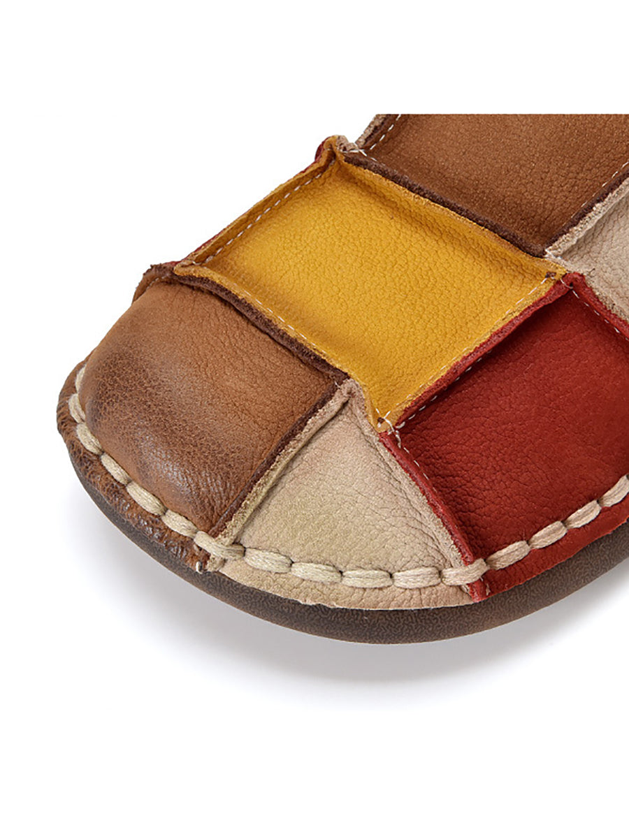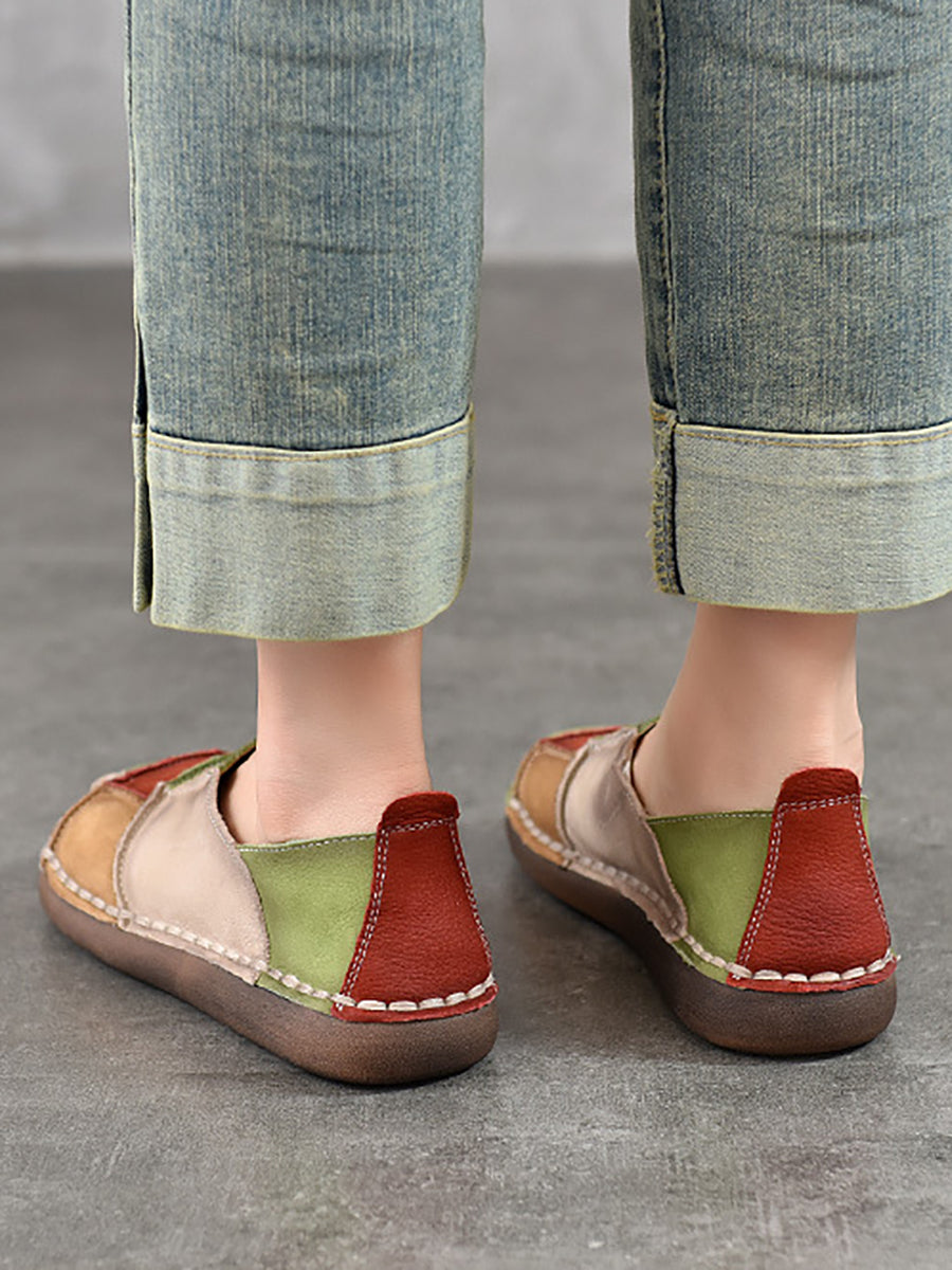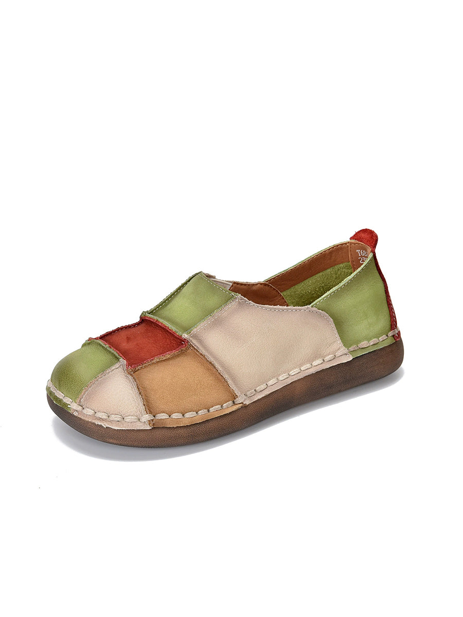 Sapatos femininos de primavera retrô em couro com blocos de cores