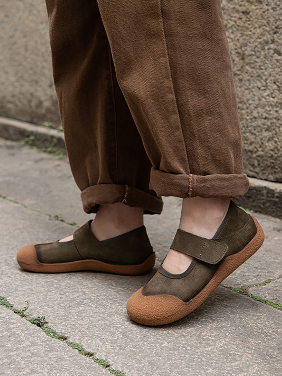 Sapatos femininos de primavera em couro legítimo, sapatos baixos.