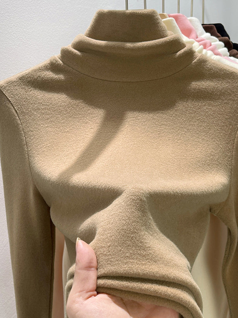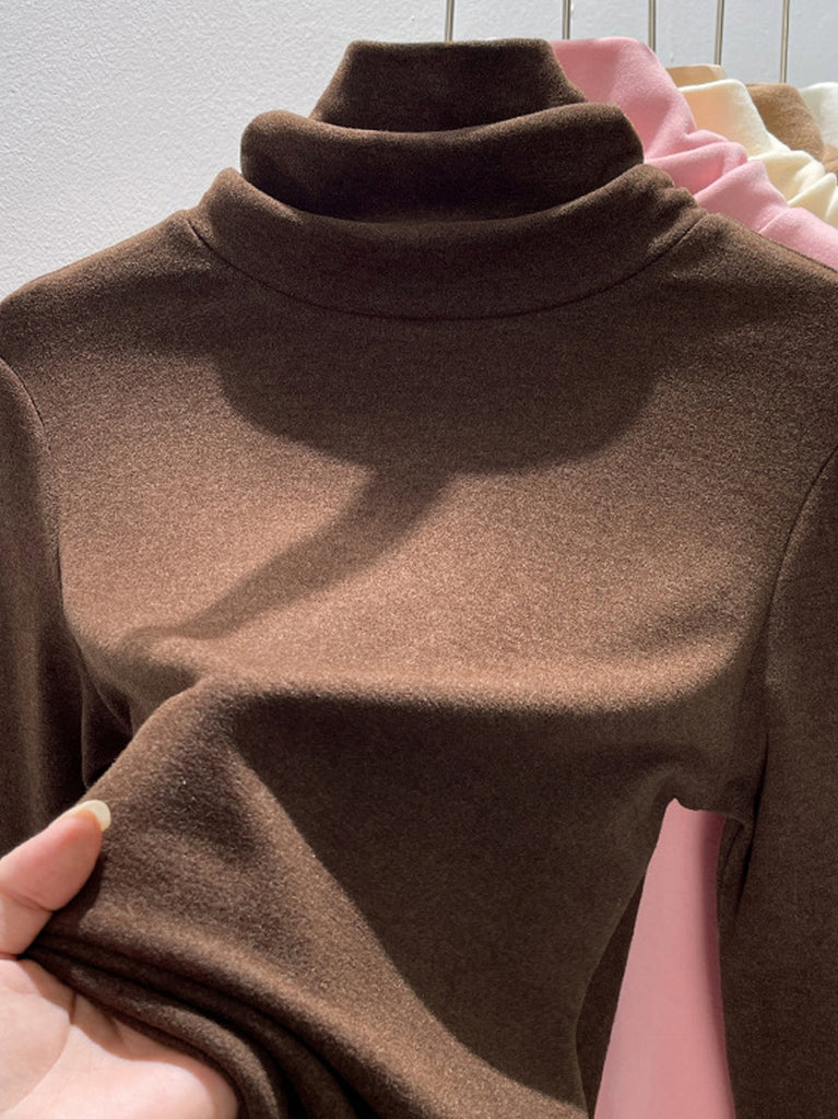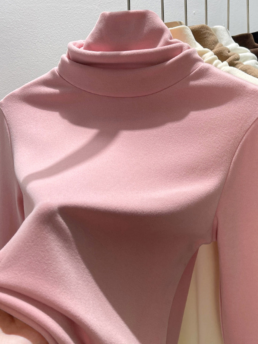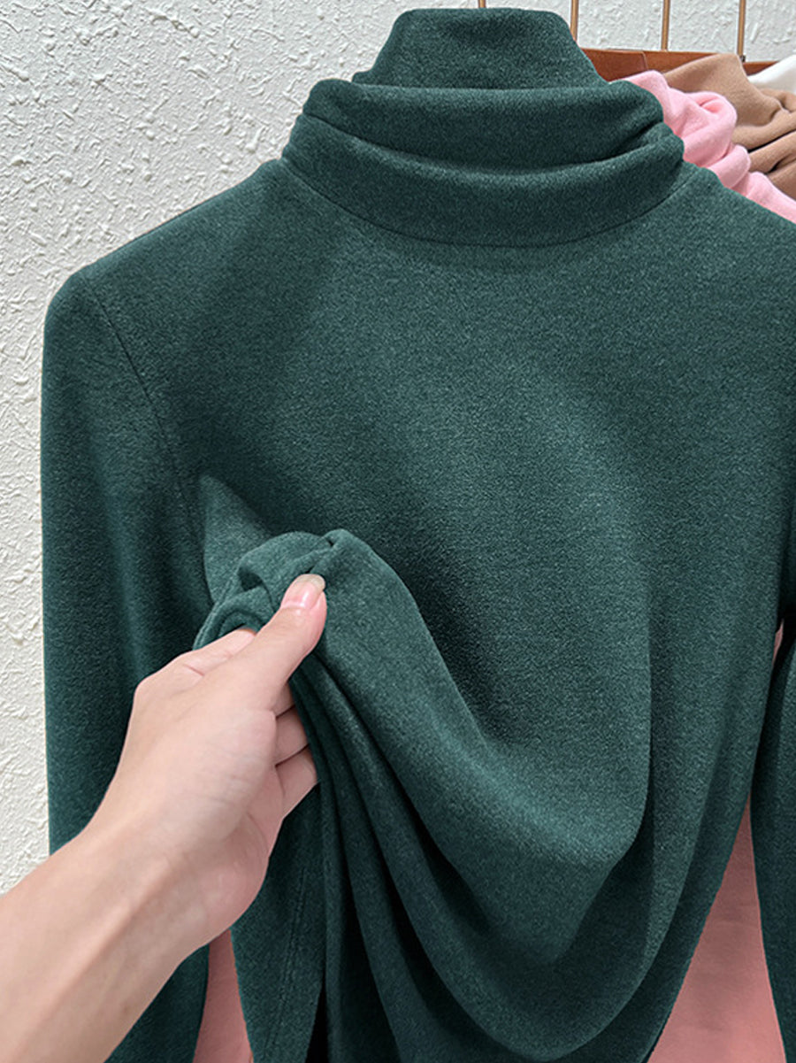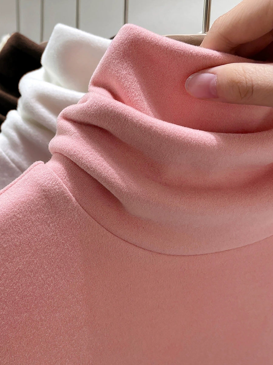 Suéter feminino de gola alta casual de cor lisa para o outono