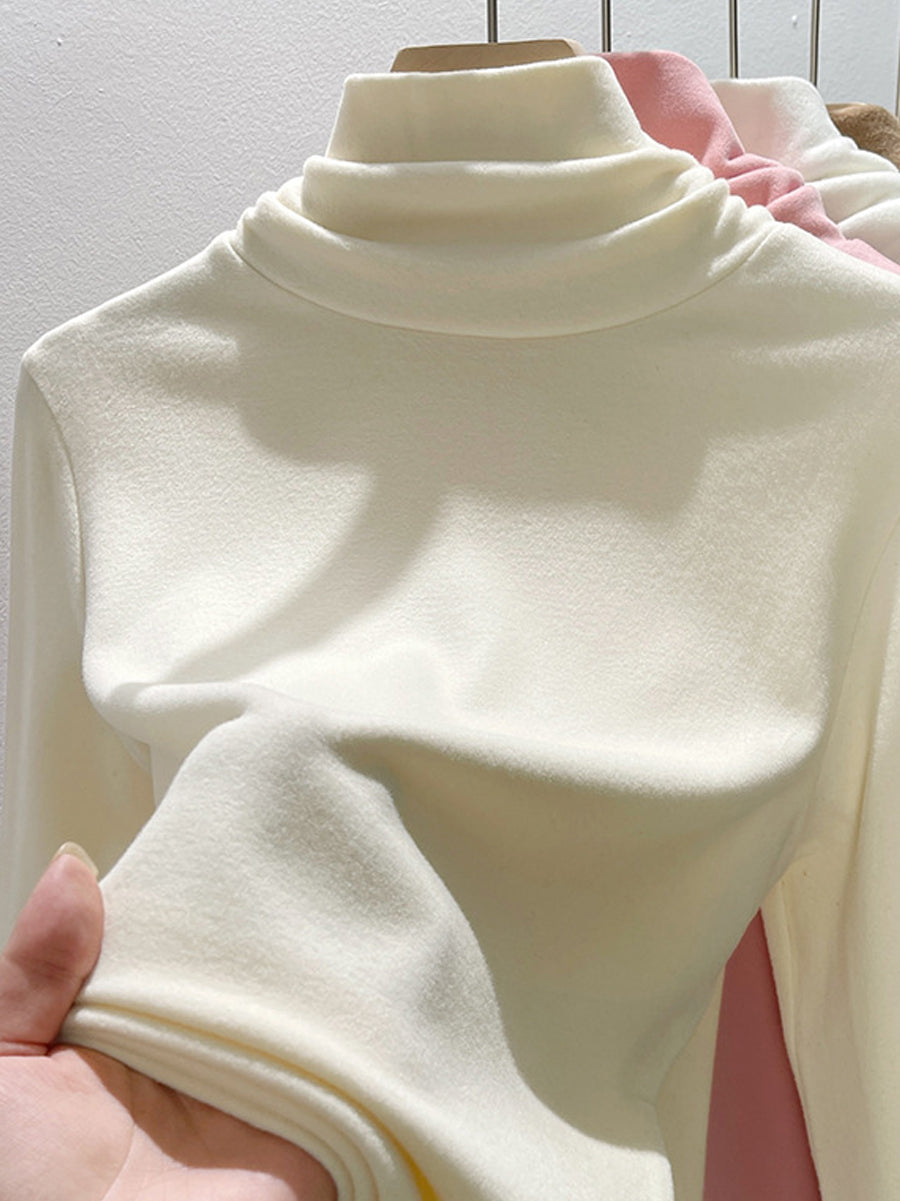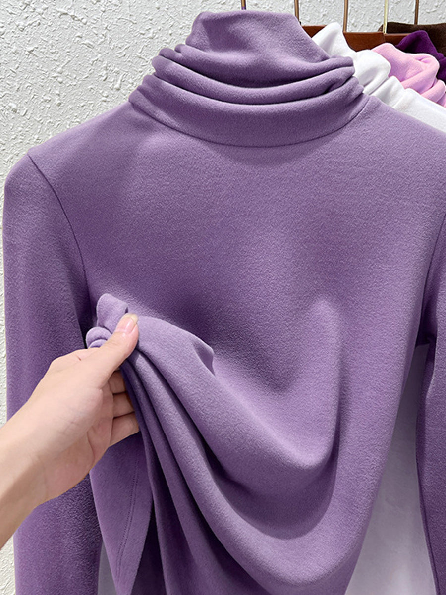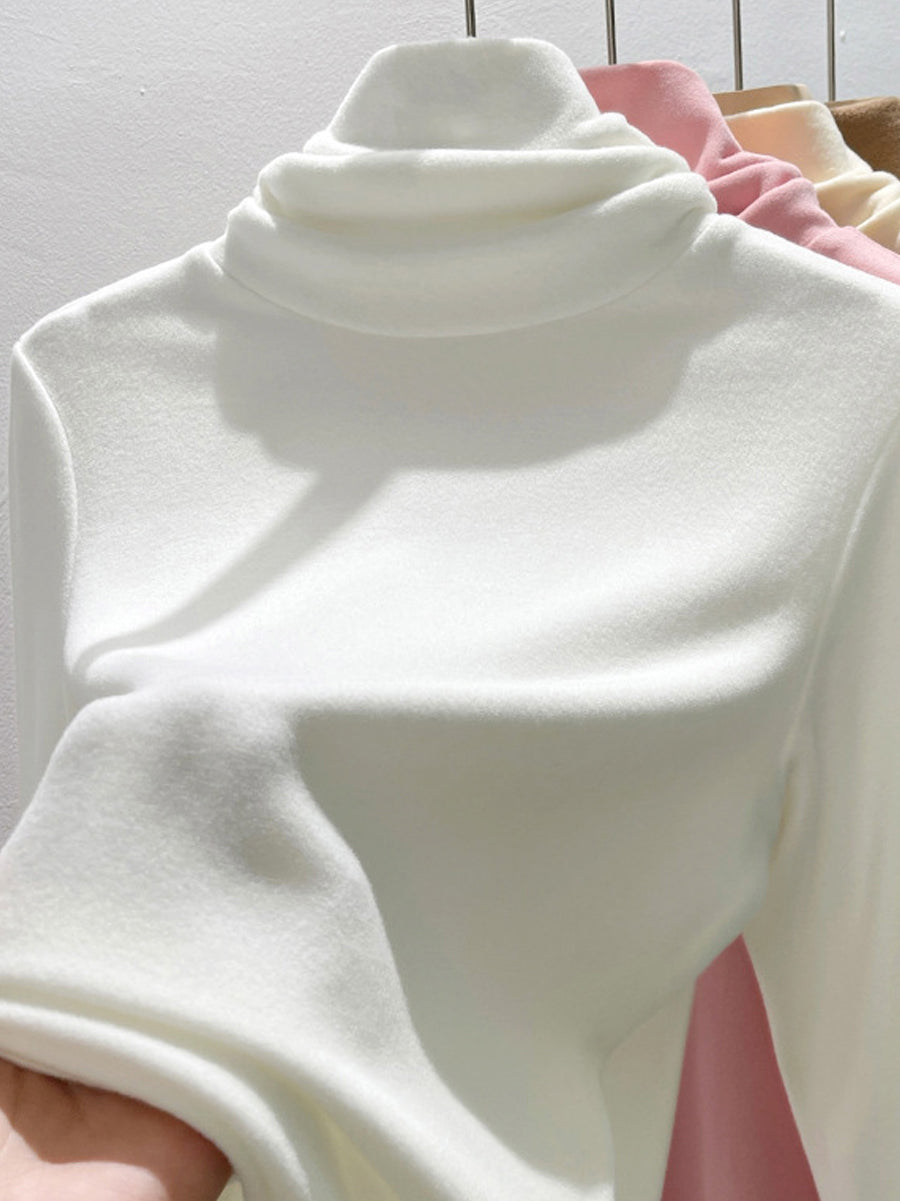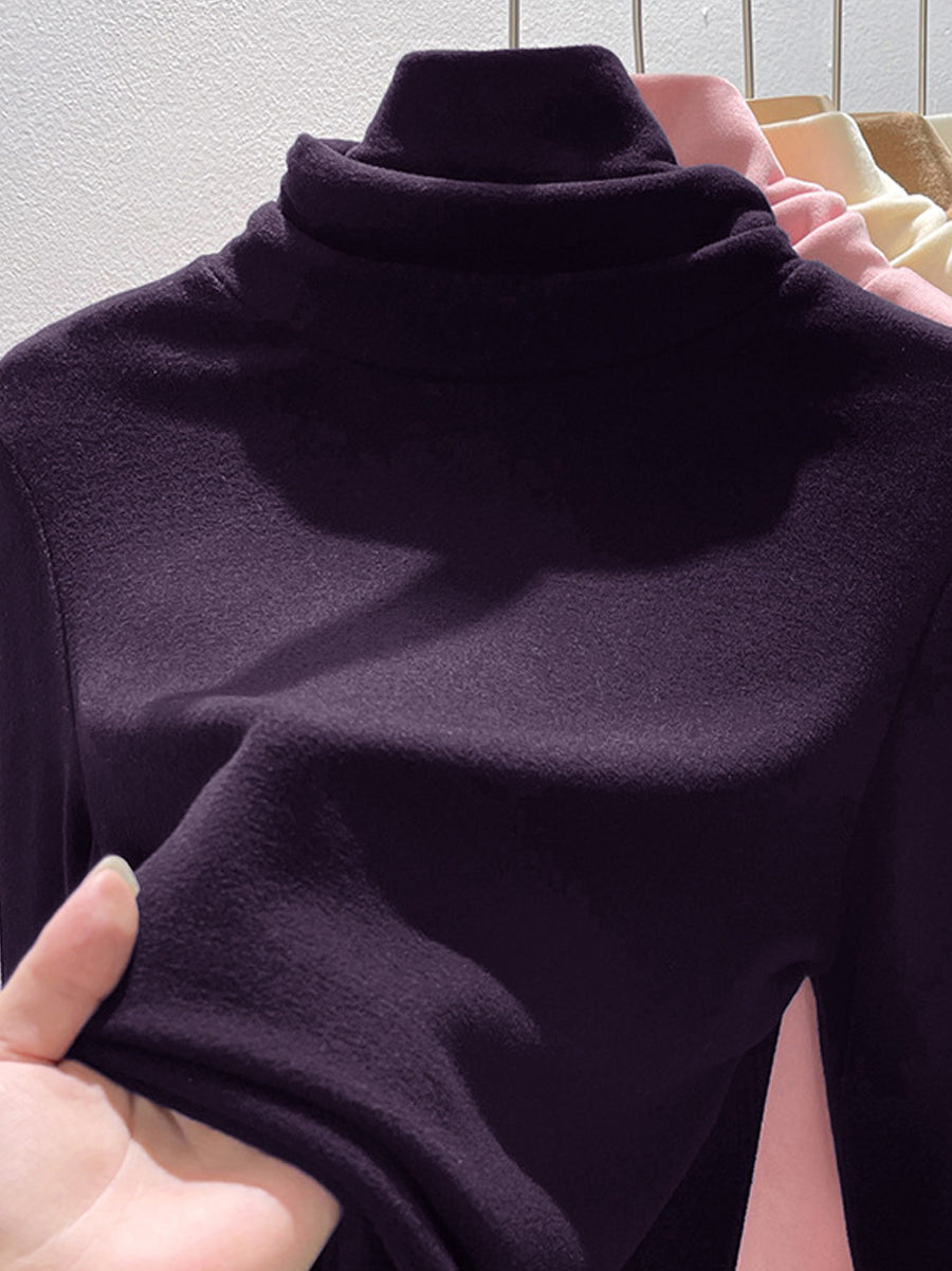 Suéter feminino de gola alta casual de cor lisa para o outono