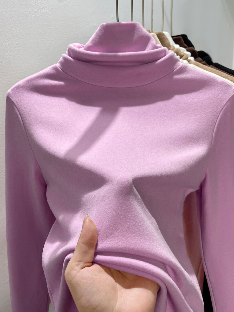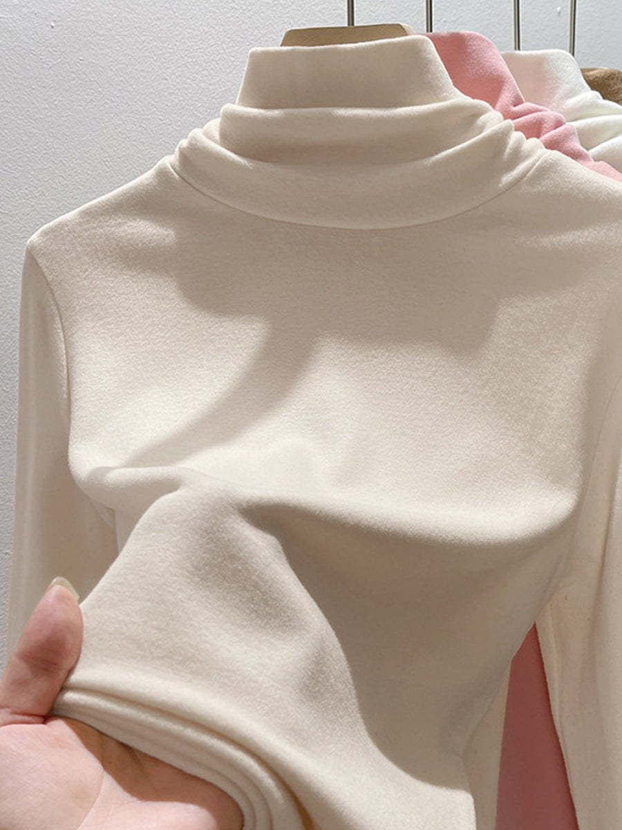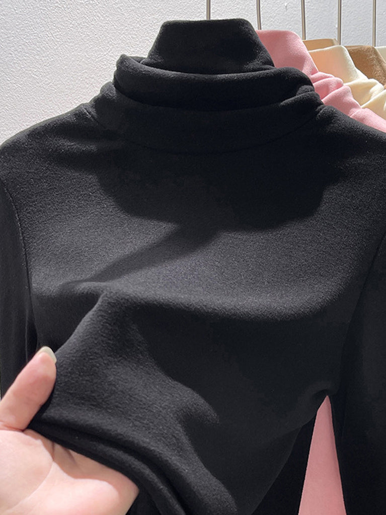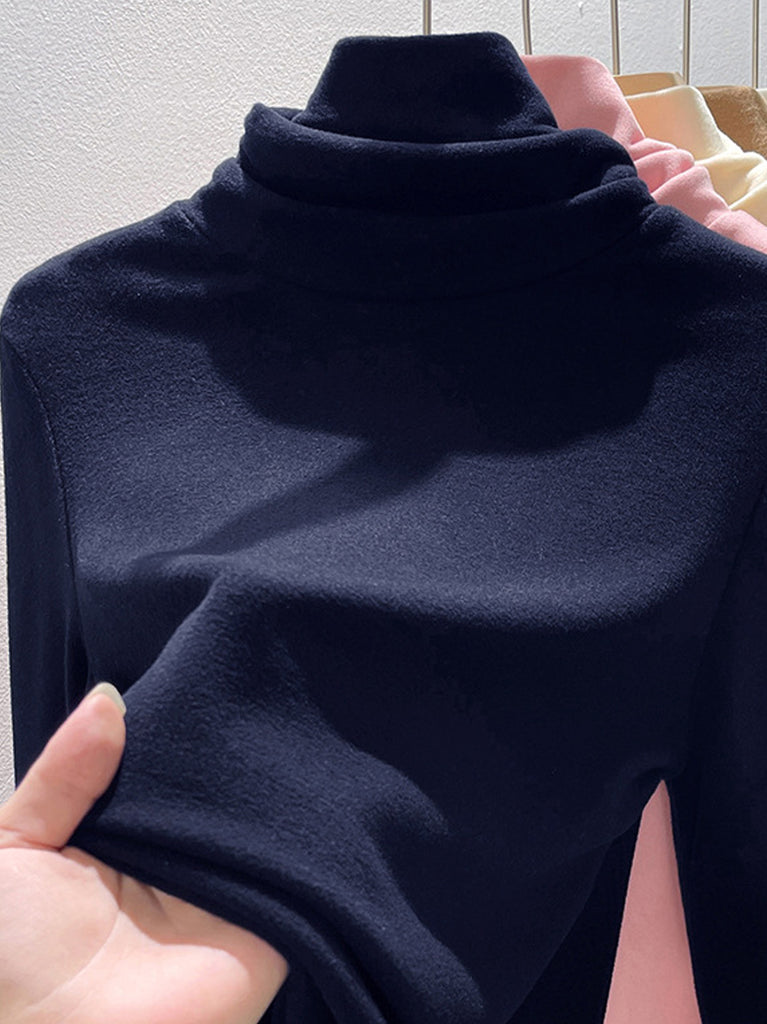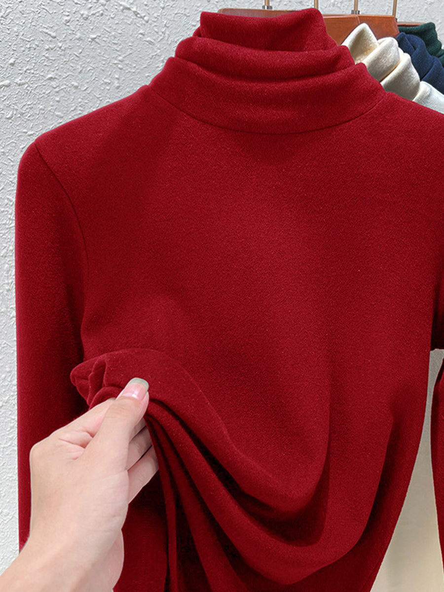 Suéter feminino de gola alta casual de cor lisa para o outono