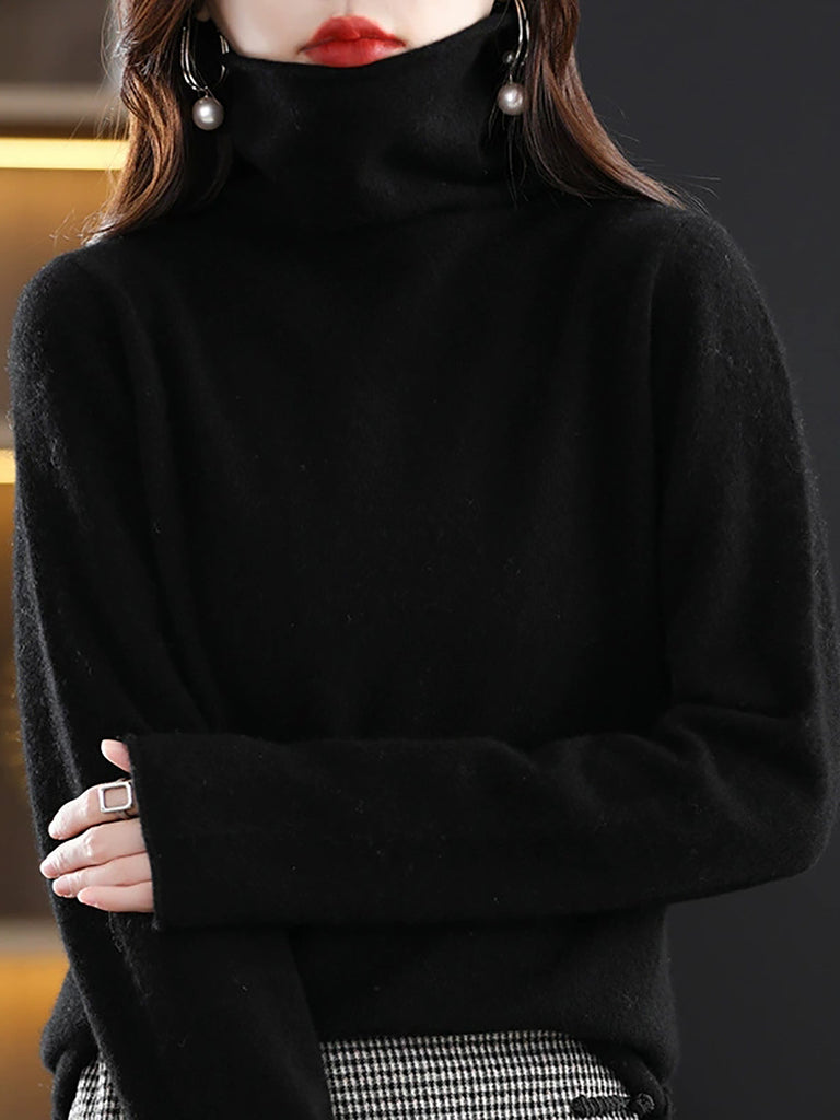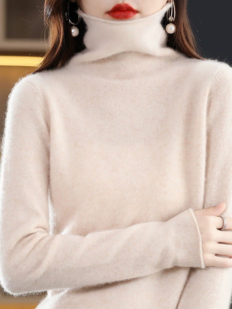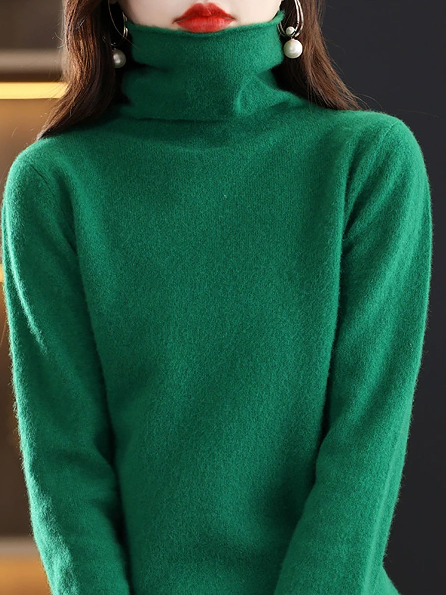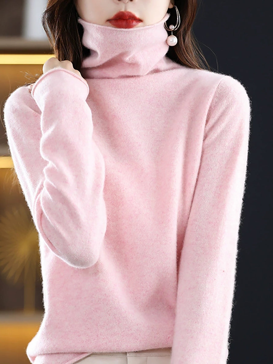 Suéter de lã tricotado com gola alta casual feminino para outono