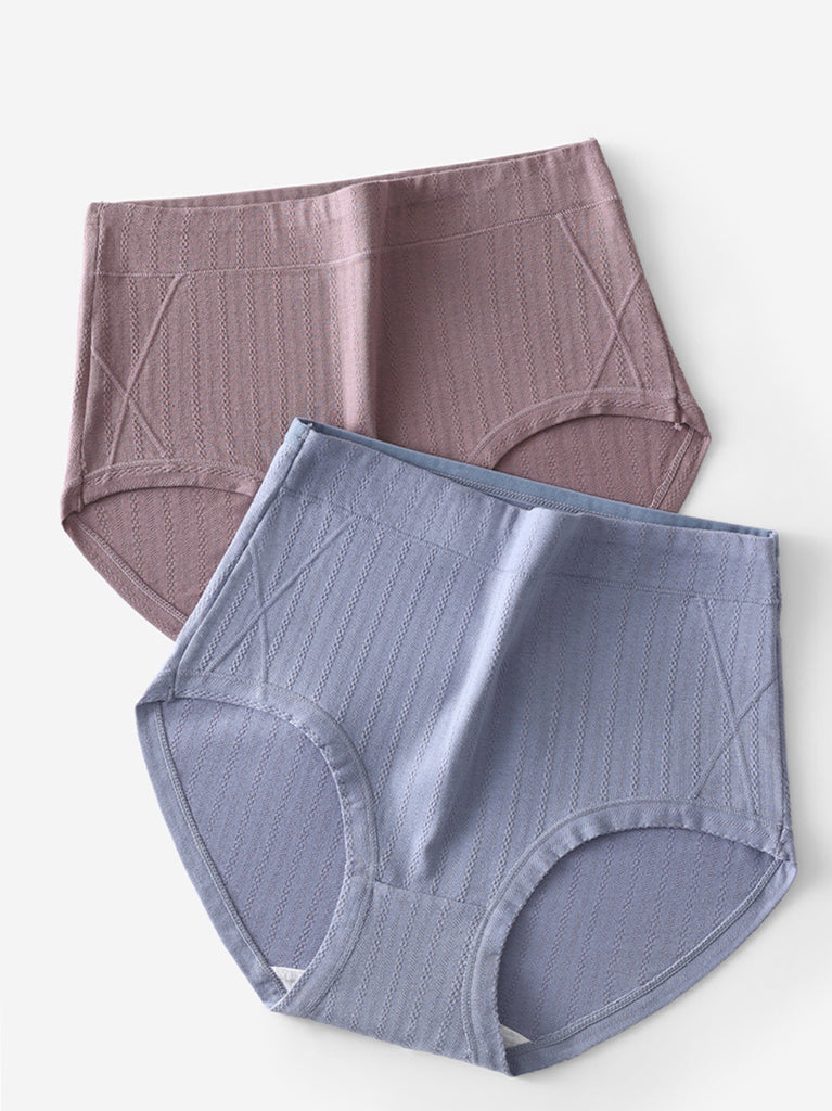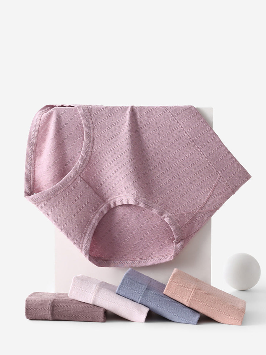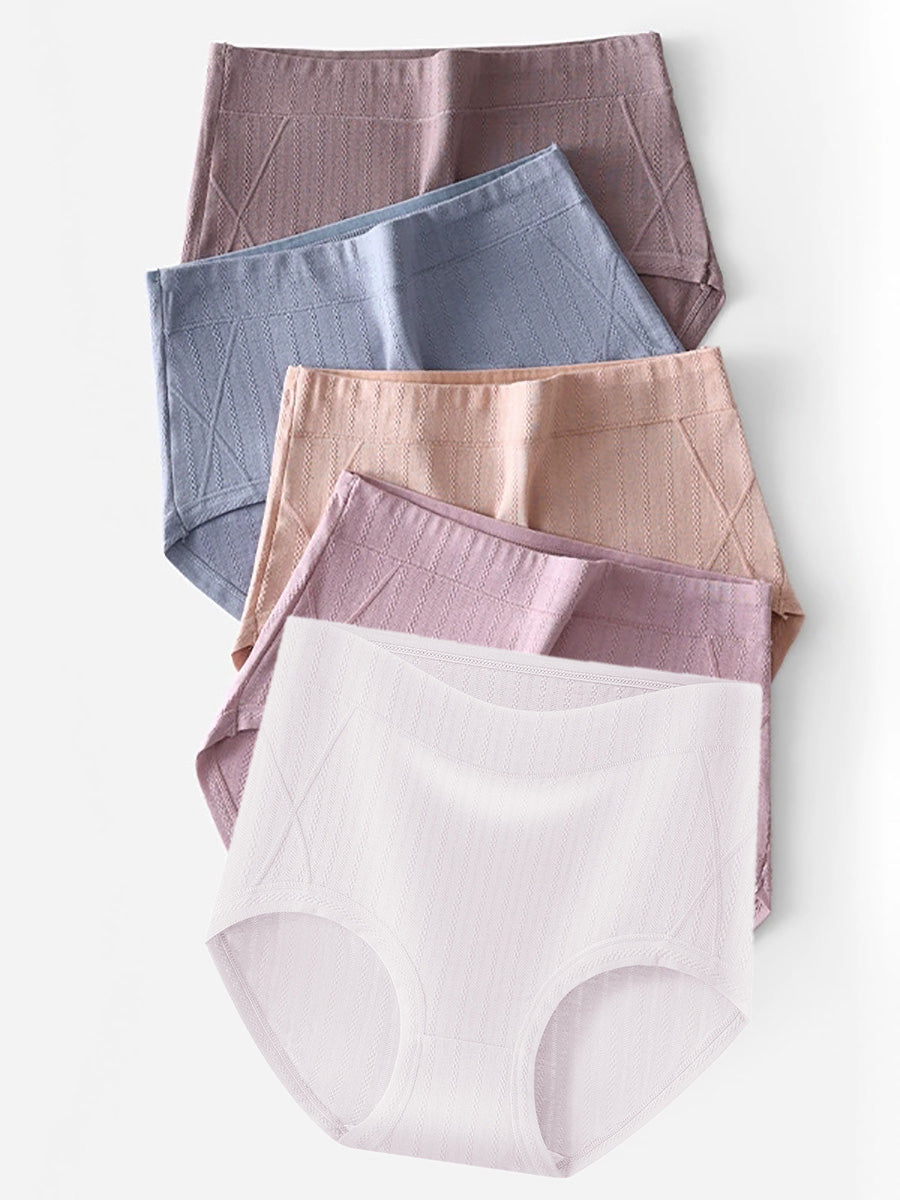 Conjunto de 5 peças de calcinhas femininas casuais de cintura alta em cores lisas.