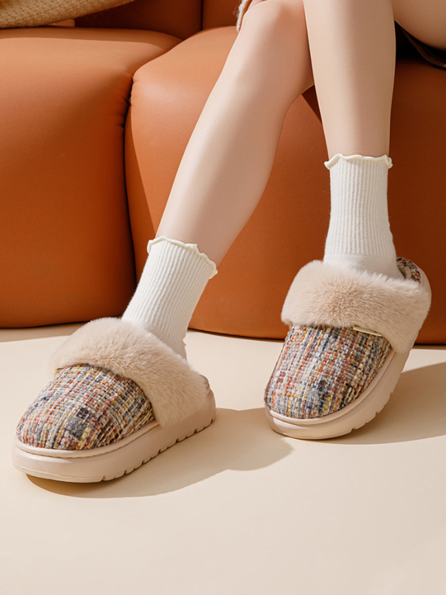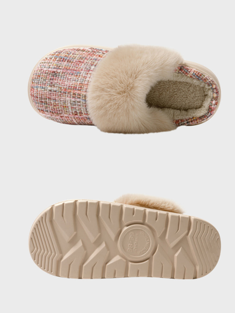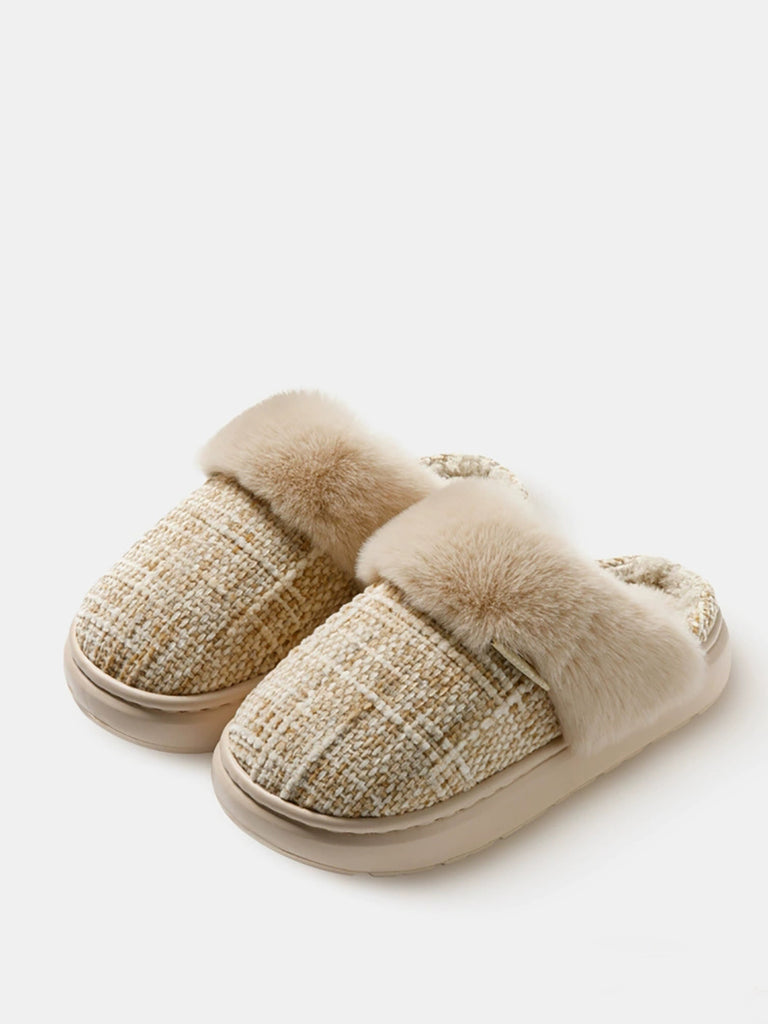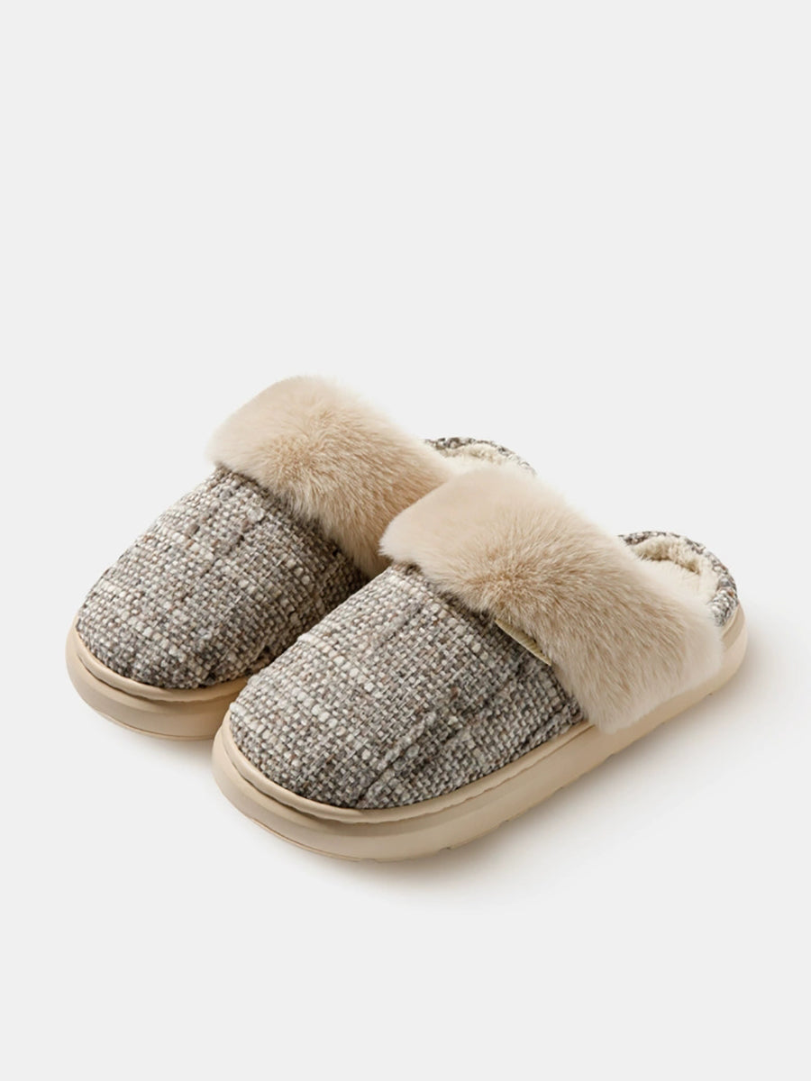 Pantufas de inverno para casal, em pelúcia de cor lisa.