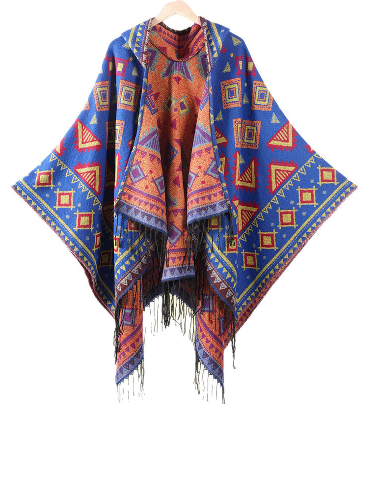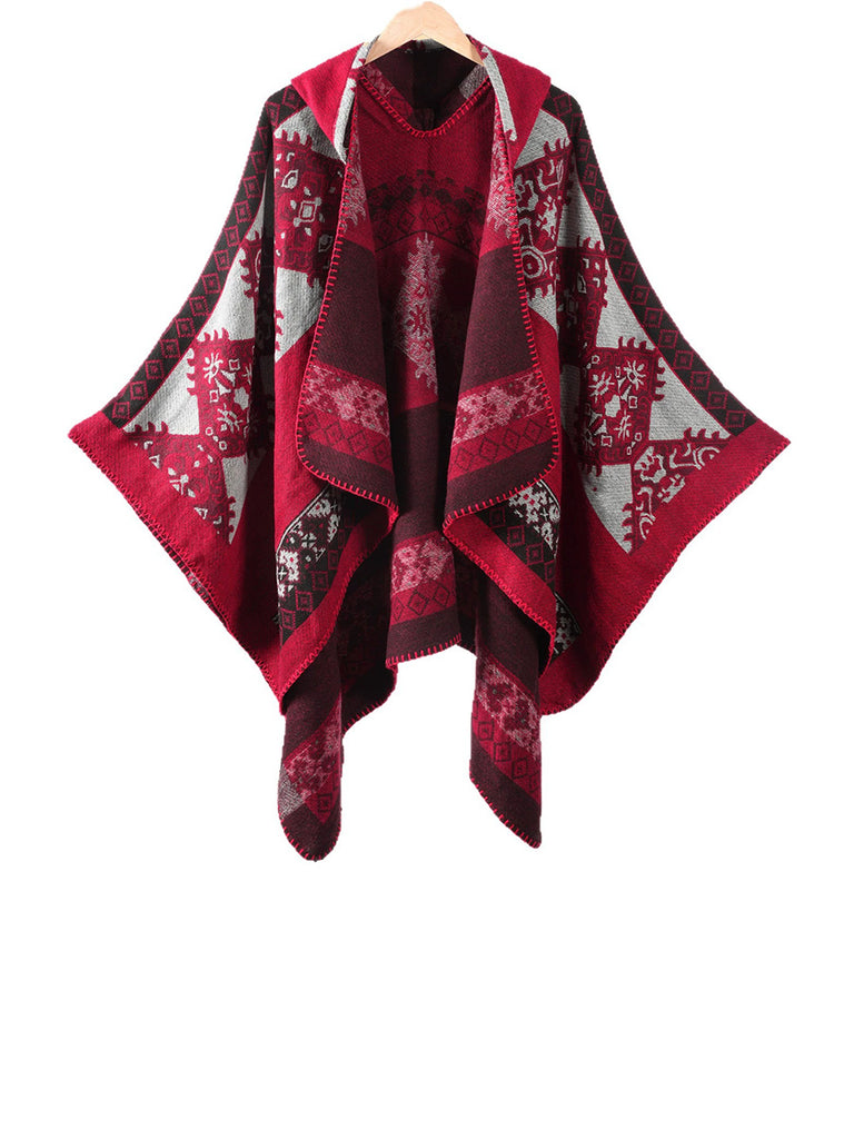 Xale com capuz quente de inverno geométrico étnico