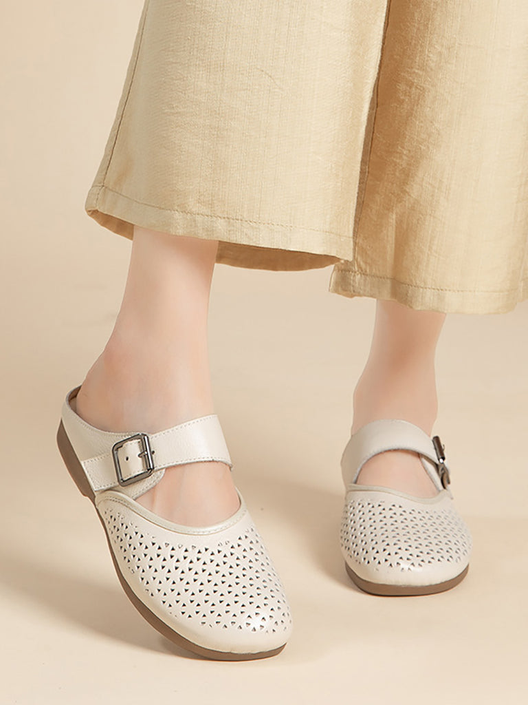 Pantufas femininas vintage de couro legítimo com salto baixo