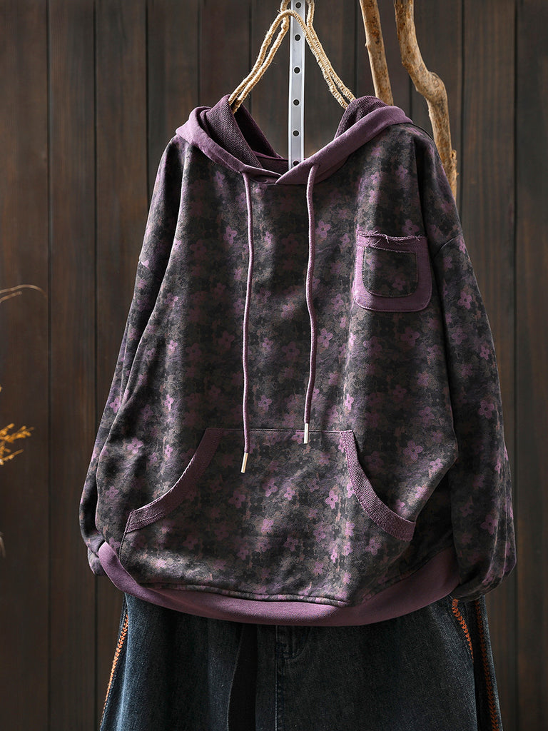 Moletom feminino com capuz e estampa de flores de outono 100% algodão