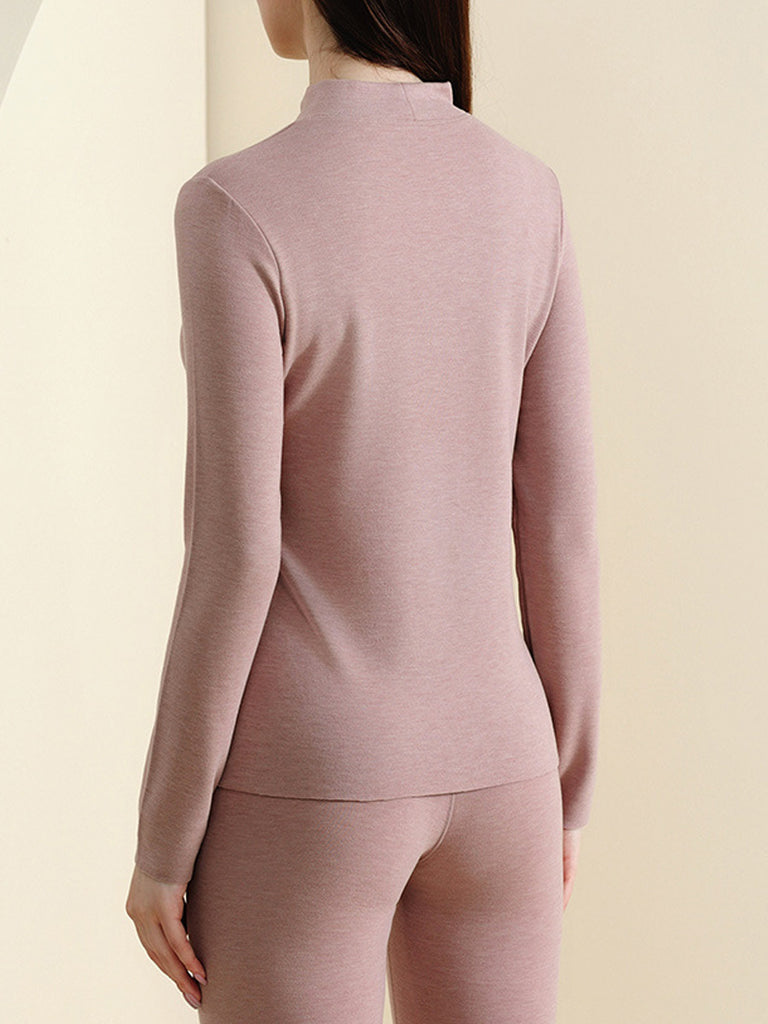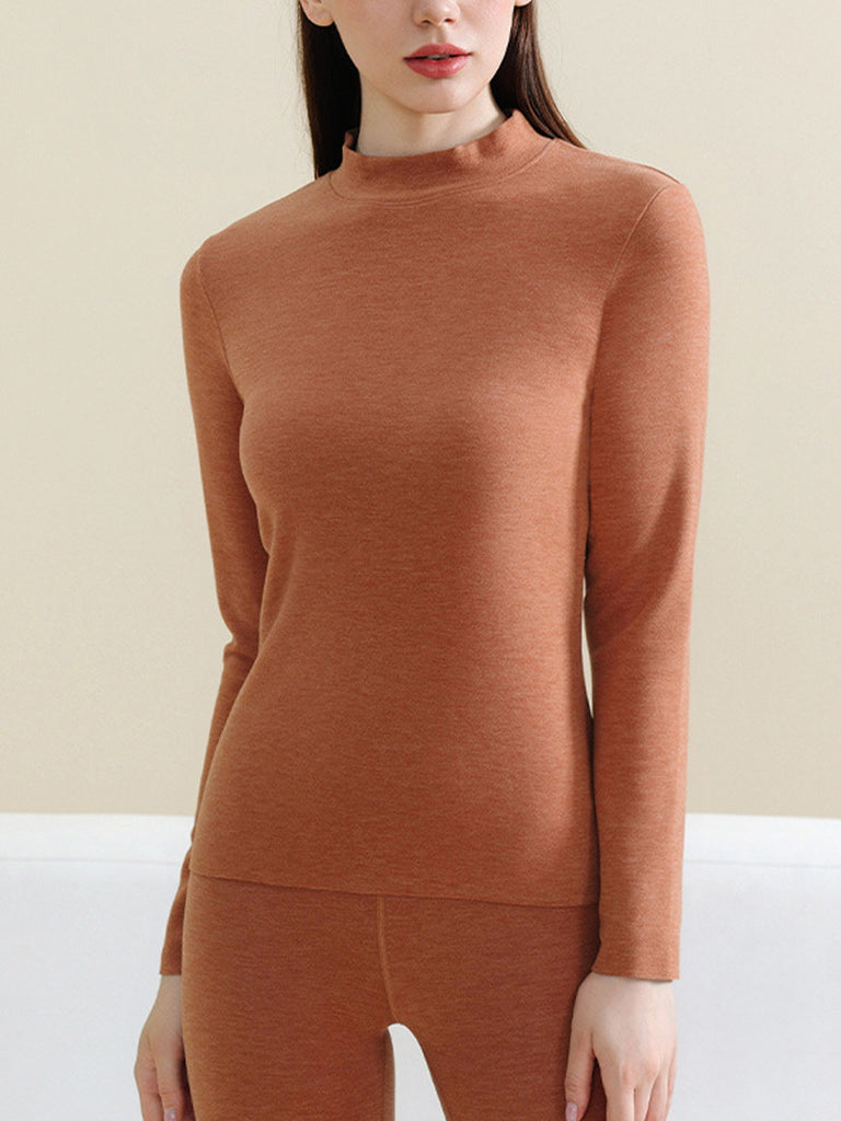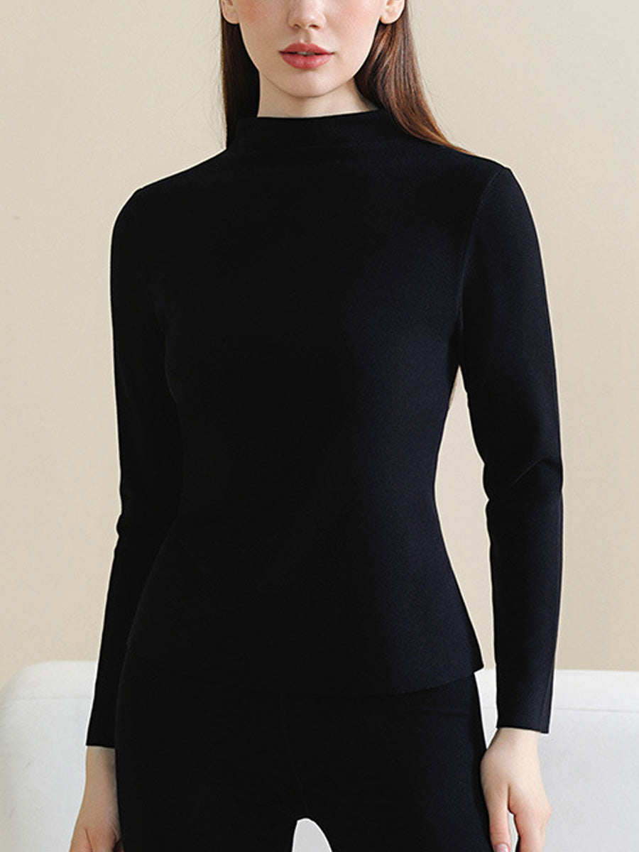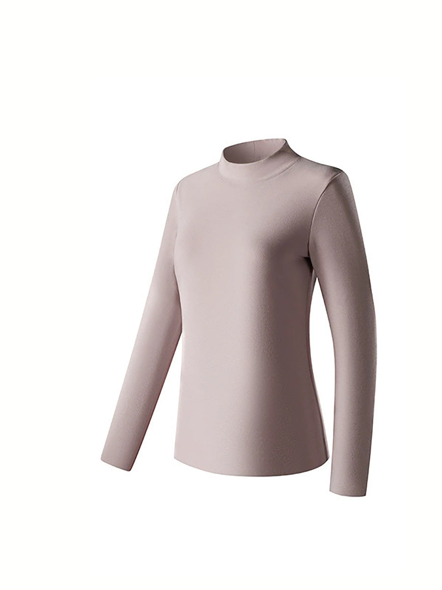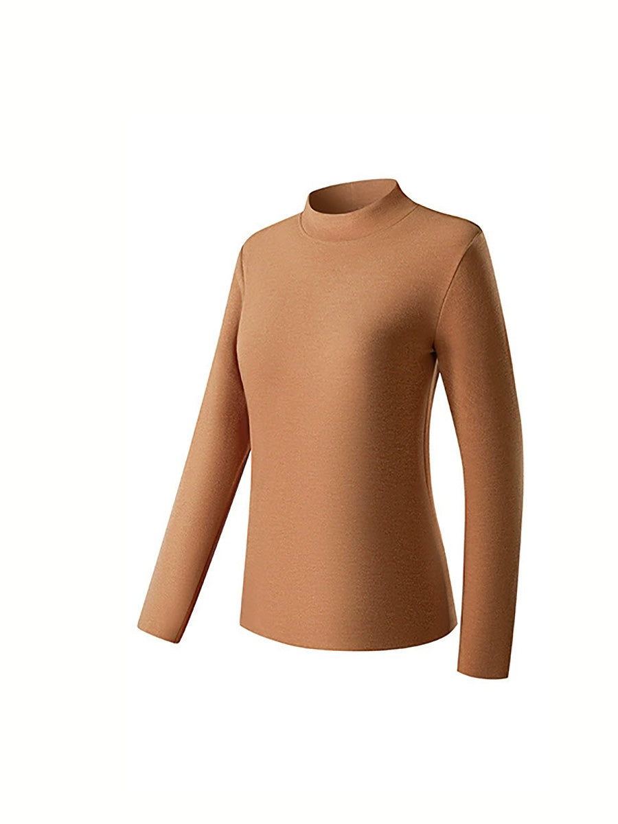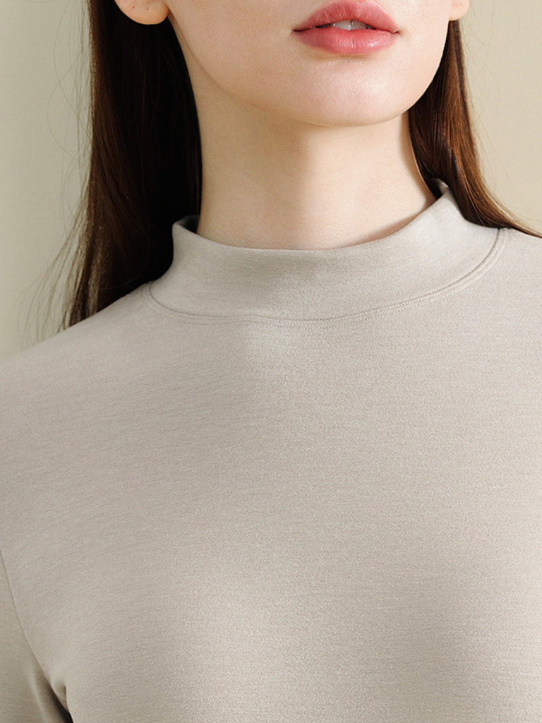 Blusa feminina de gola alta curta em cor lisa para o outono