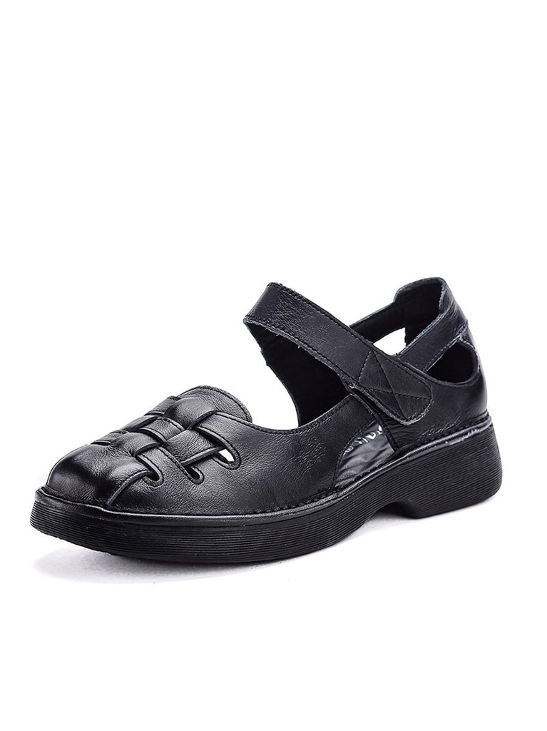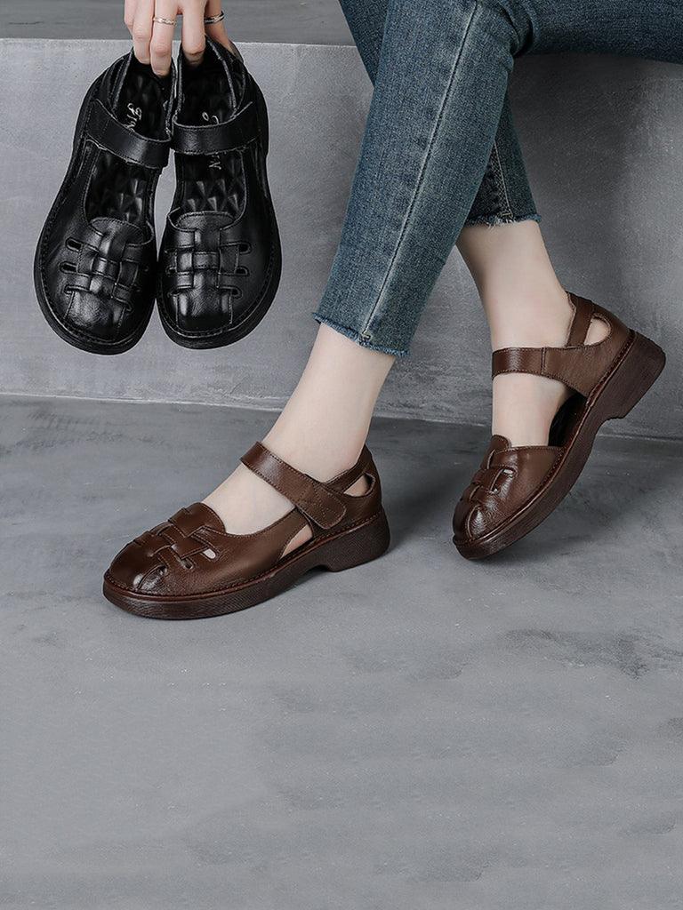 Sapatos femininos casuais de verão em couro legítimo com plataforma trançada