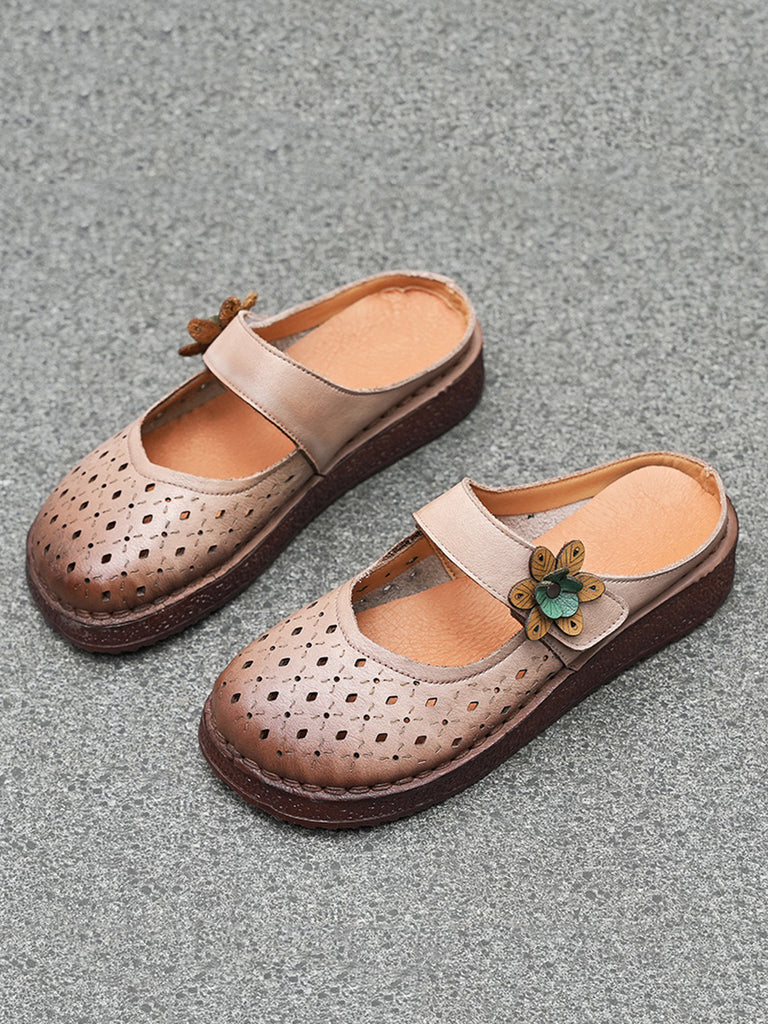 Sandálias femininas de verão vintage em couro legítimo