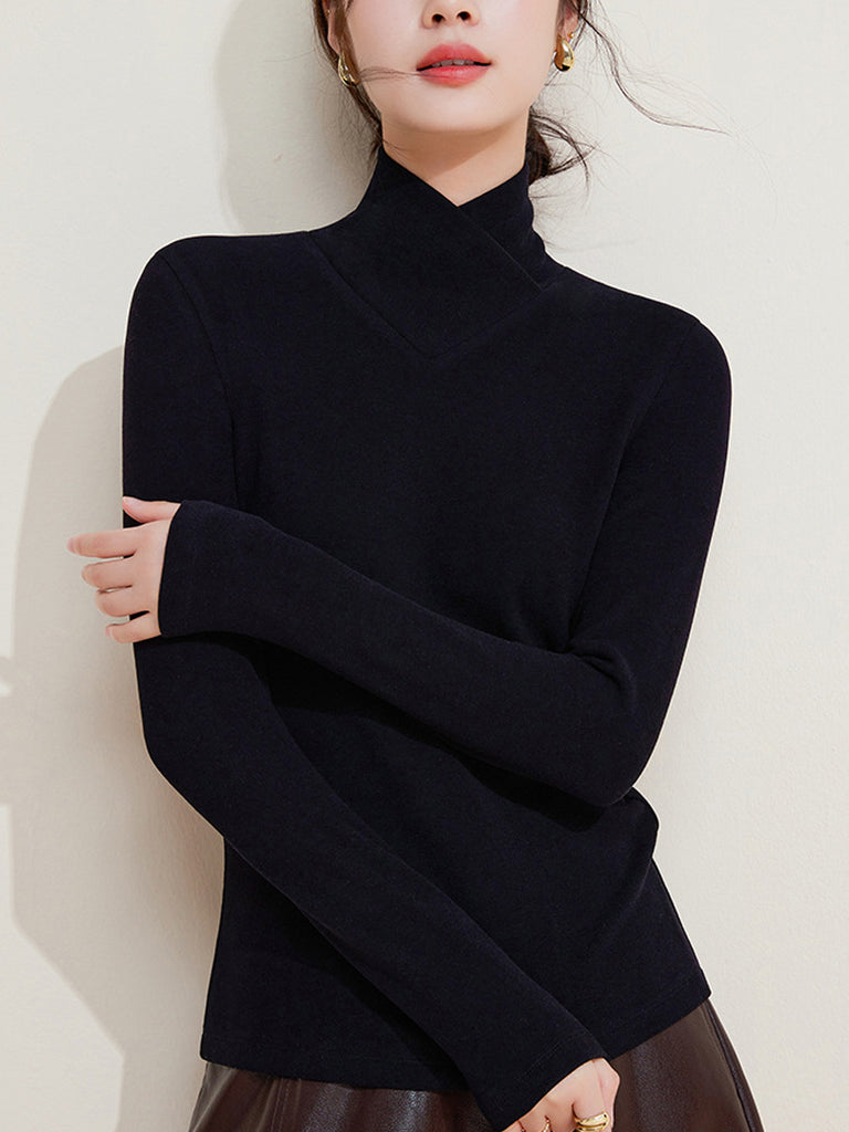 Blusa feminina vintage de outono, cor lisa, decote em V e botões.