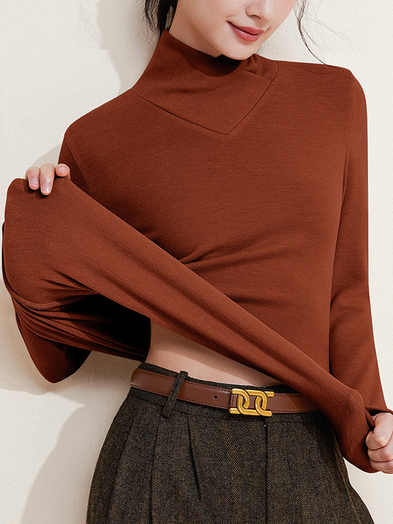 Suéter feminino de lã com gola redonda, cor lisa, estilo casual de outono.