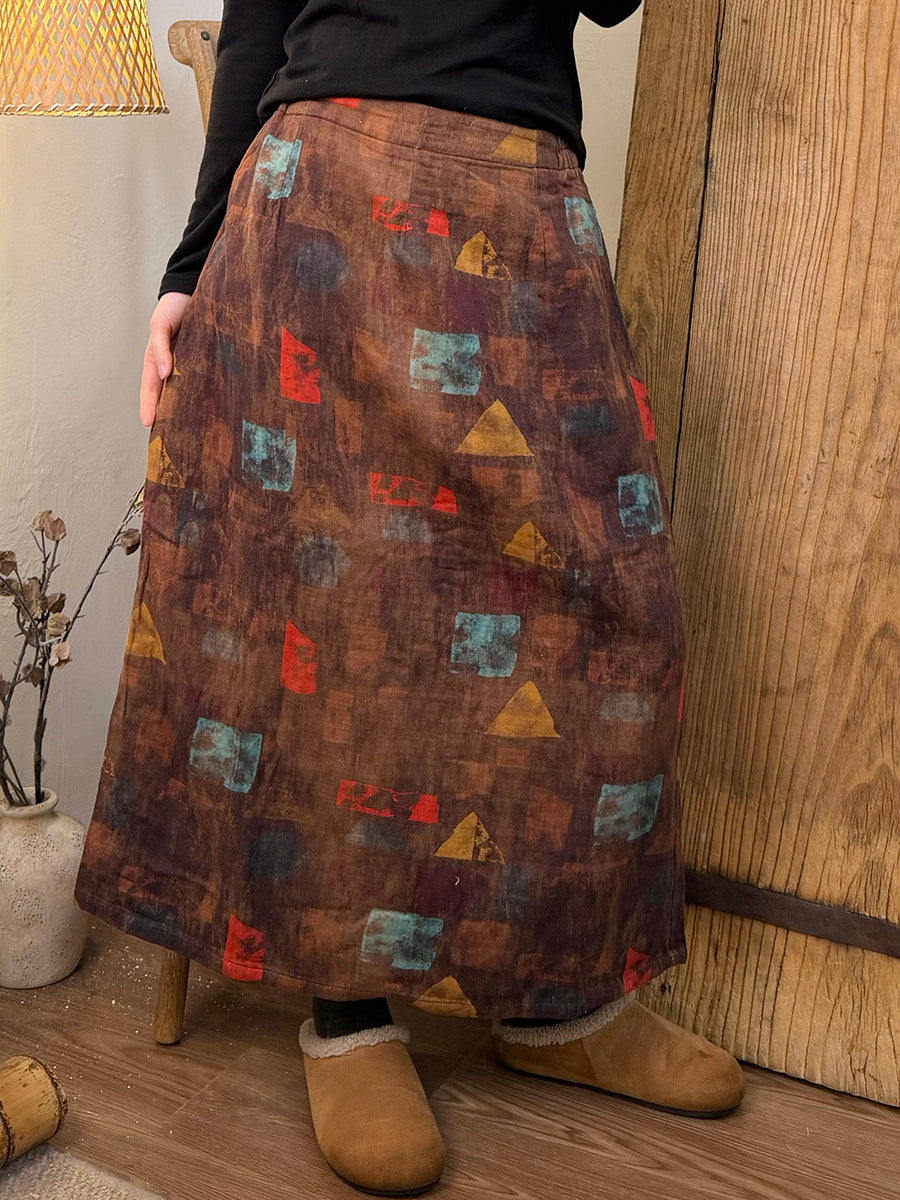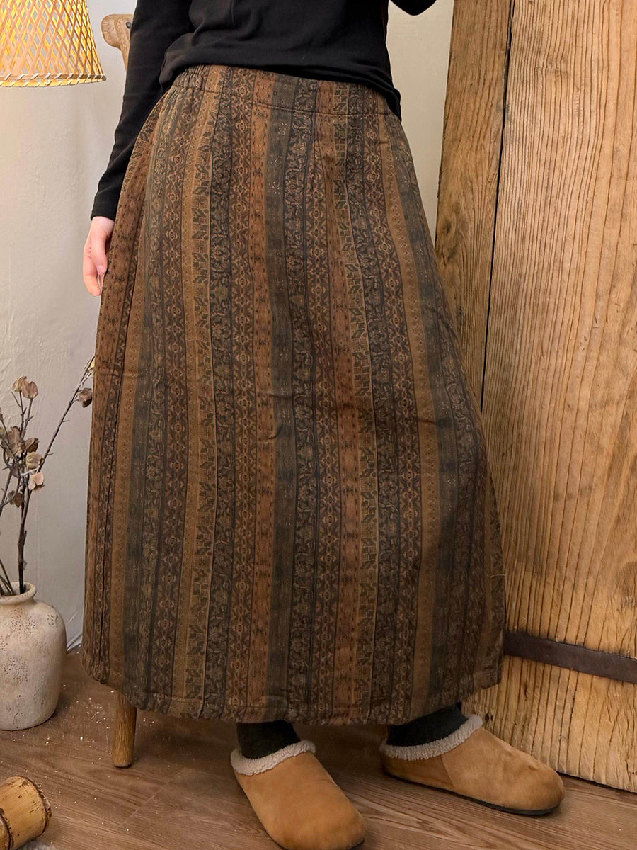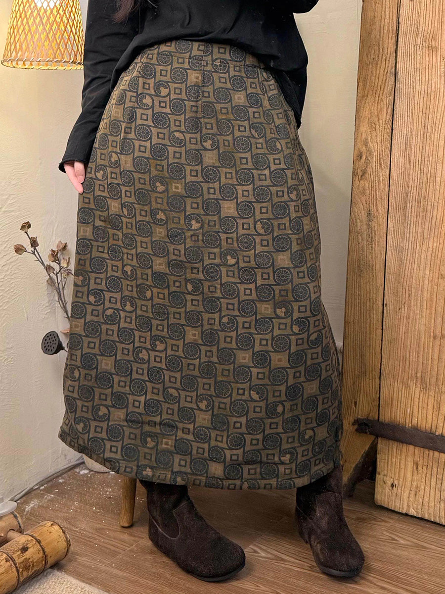 Saia feminina de algodão estilo vintage com estampa floral para a primavera.