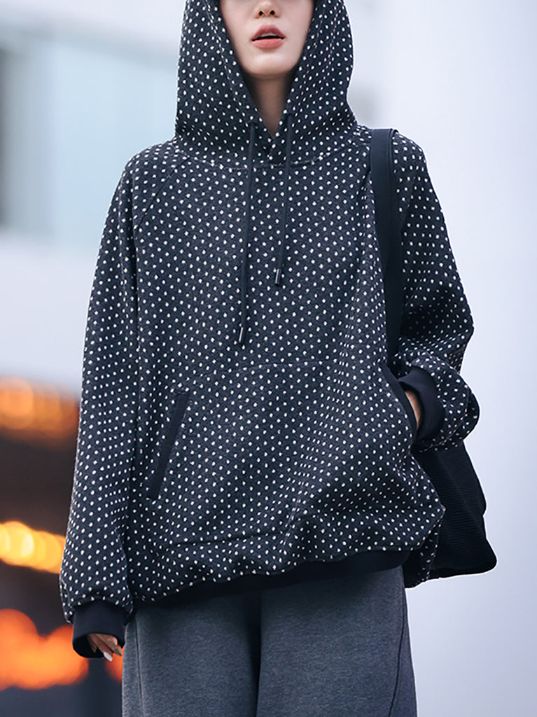 Moletom feminino de inverno com estampa vintage de bolinhas.