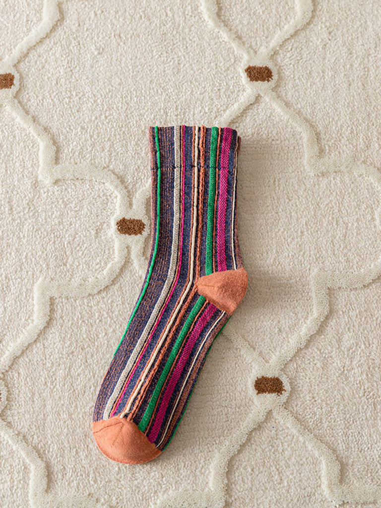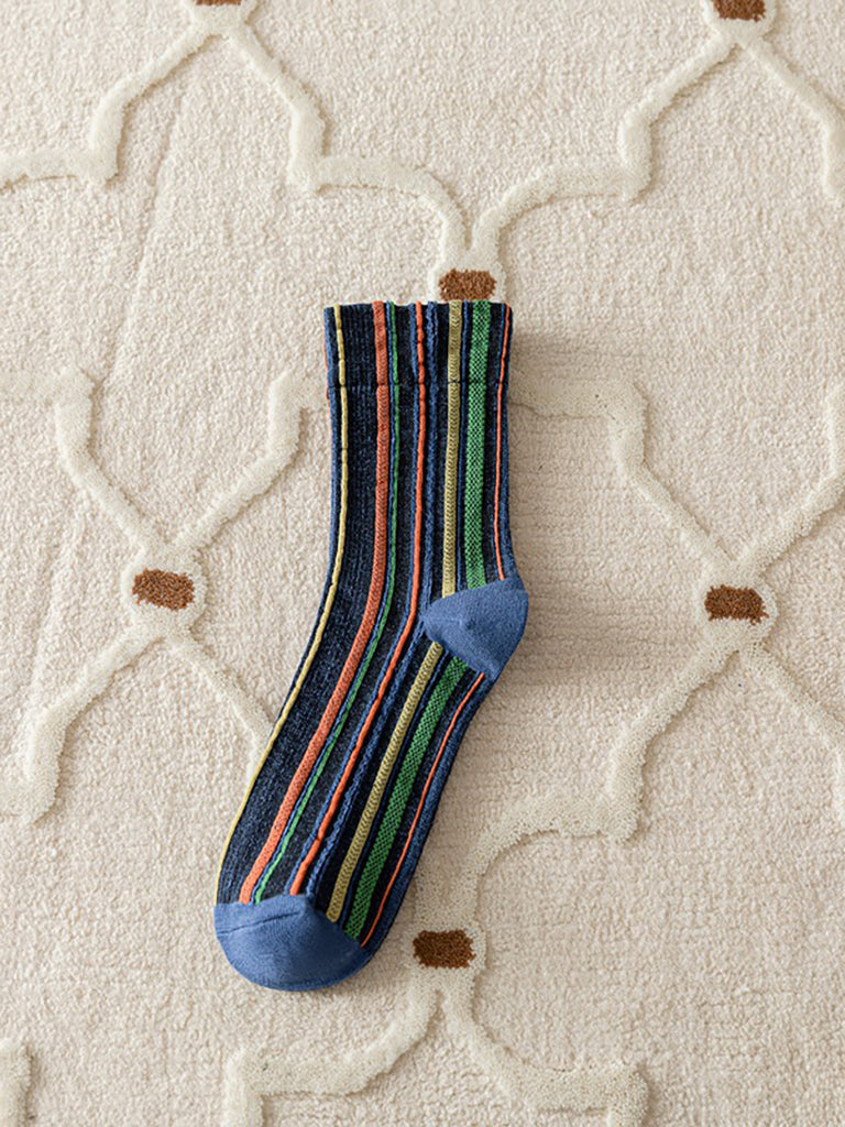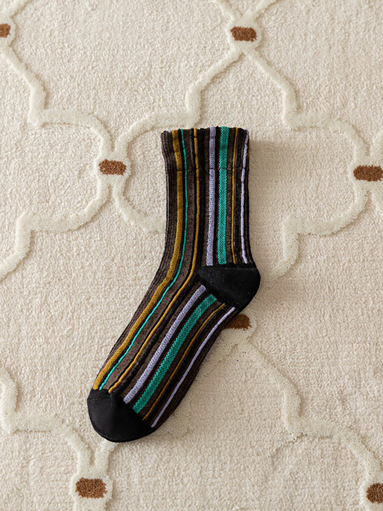 5 pares de meias listradas adultas femininas retrô outono inverno