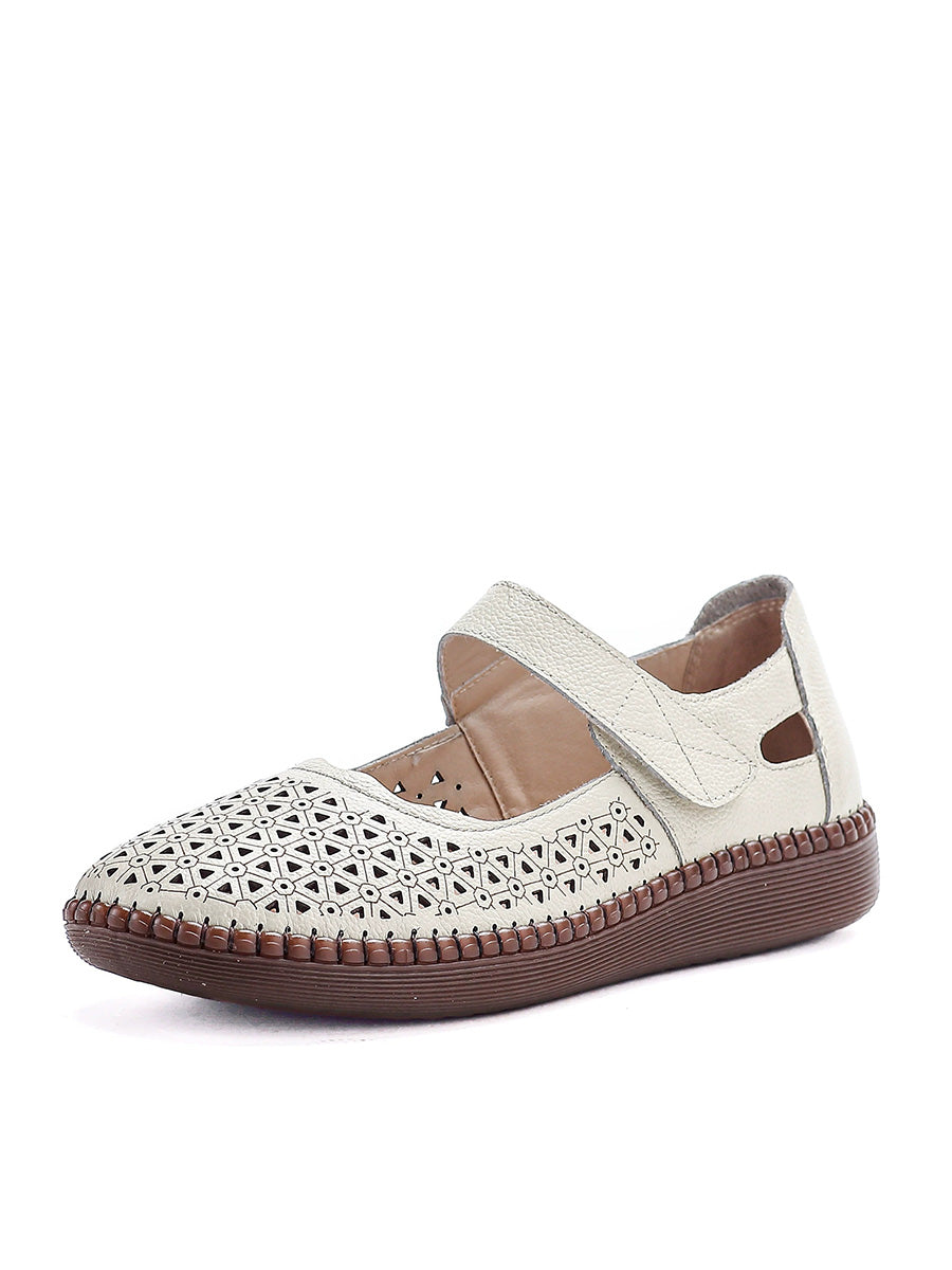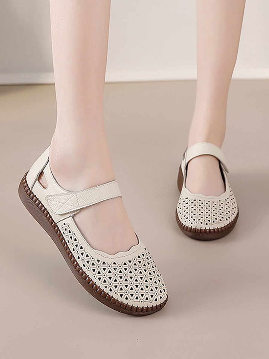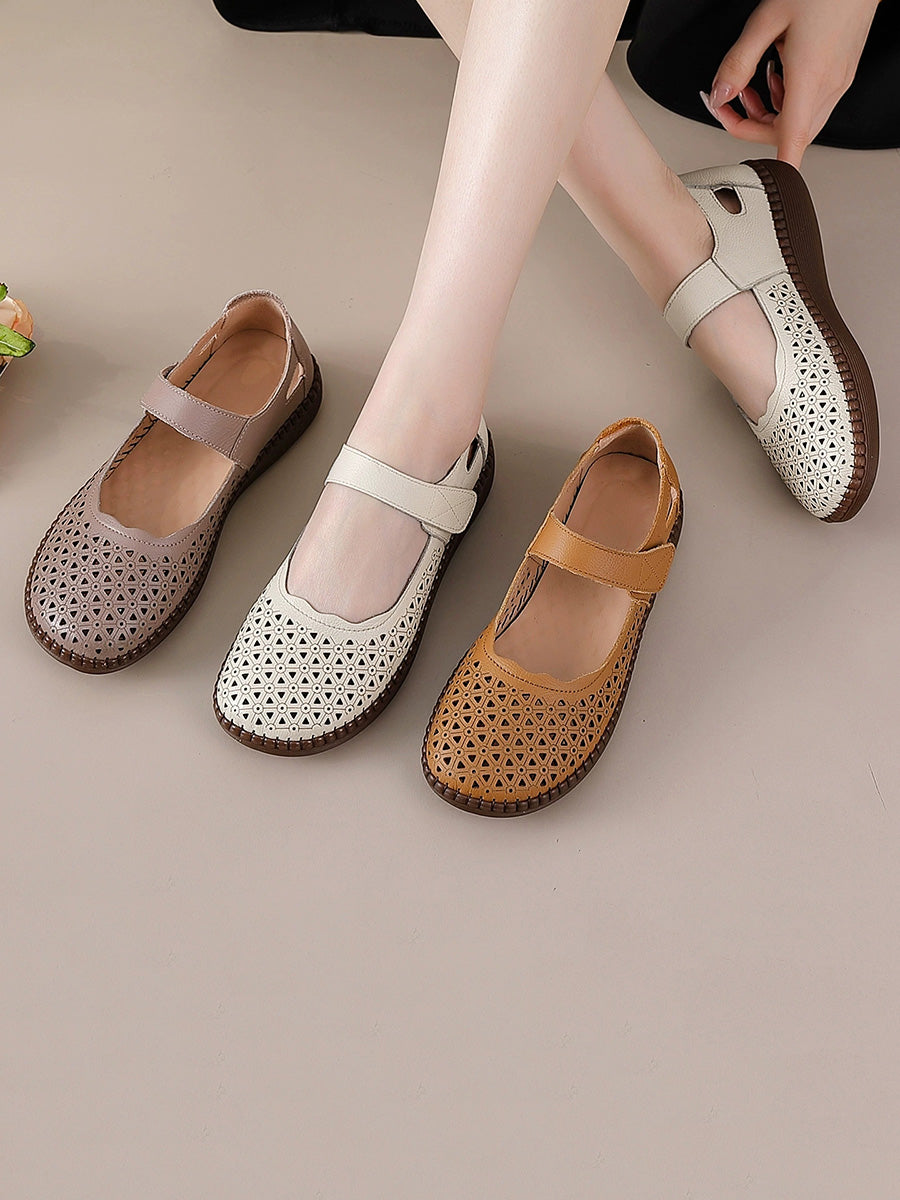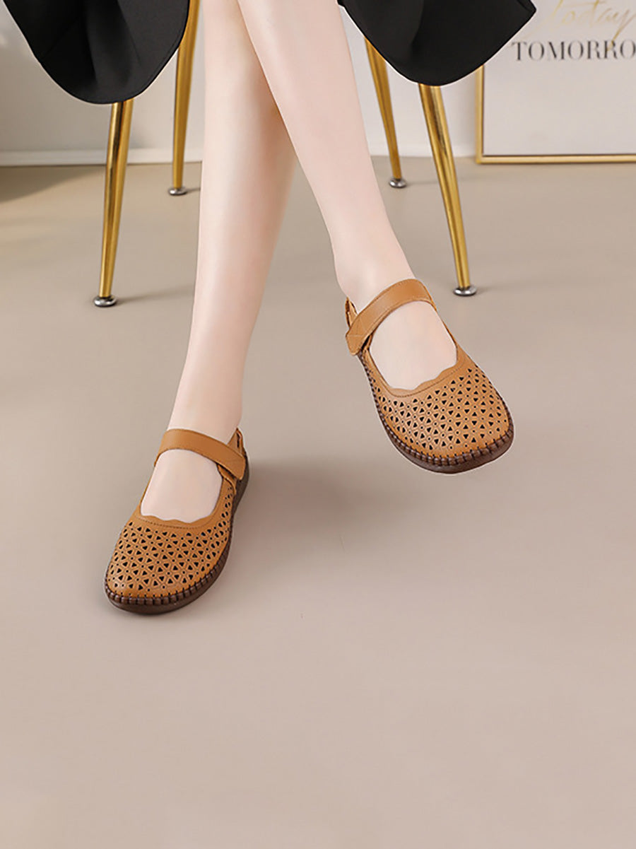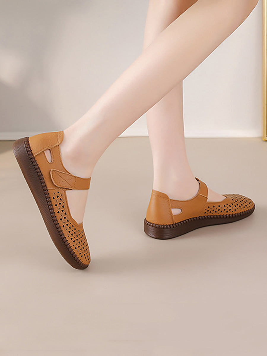 Sapatos femininos de couro legítimo vazados, modelo baixo.