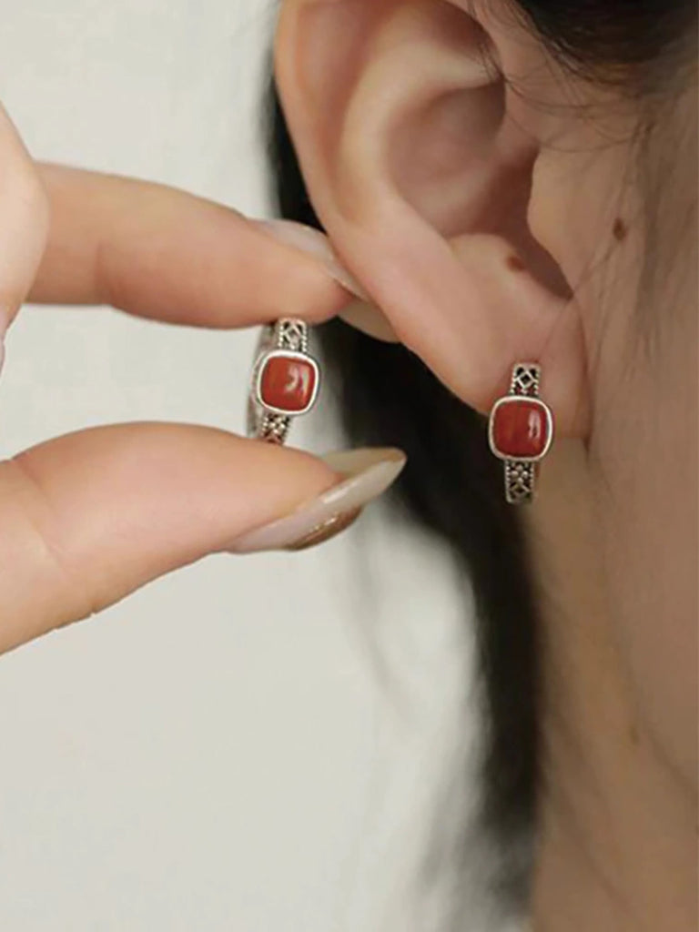 Brincos de prata com banho de cobre retrô para mulheres
