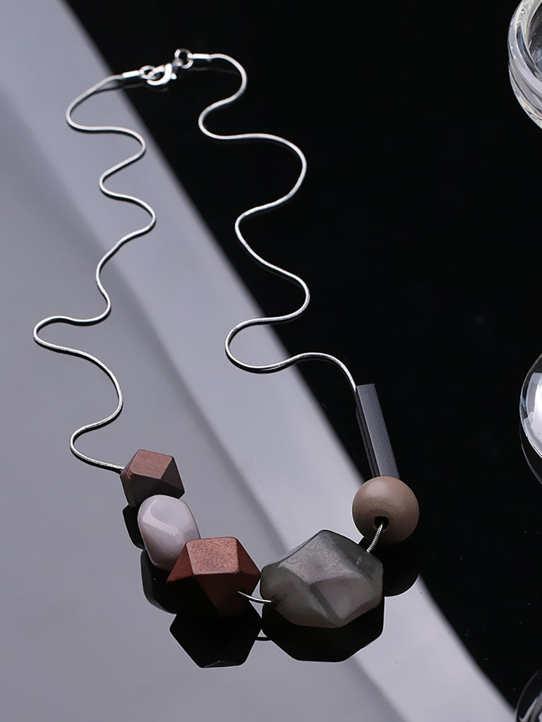 Pulseira feminina étnica de madeira com contas e borla, feita à mão.