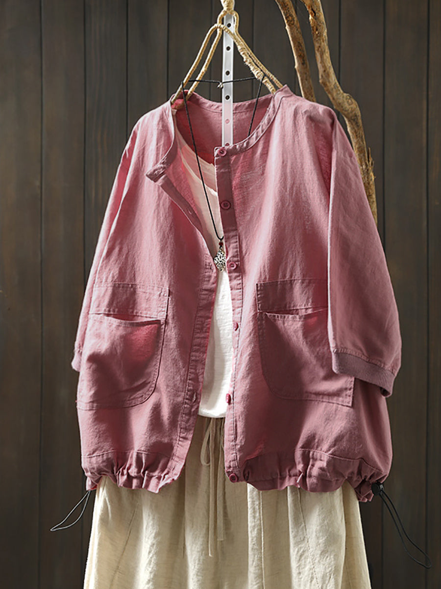 Camisa feminina de verão Artsy Pure Color com gola redonda