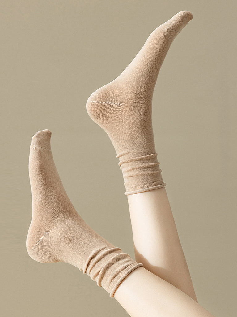 5 pares de meias femininas casuais de algodão sólido de cano médio
