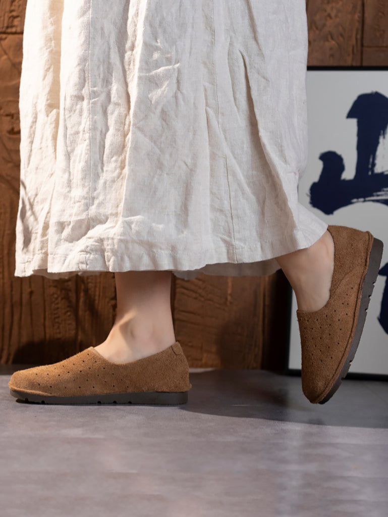 Sapatos baixos vintage de couro macio para mulheres