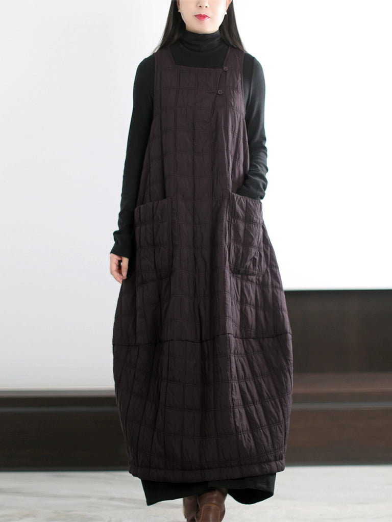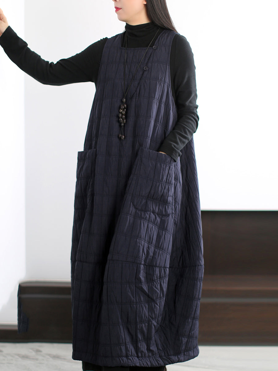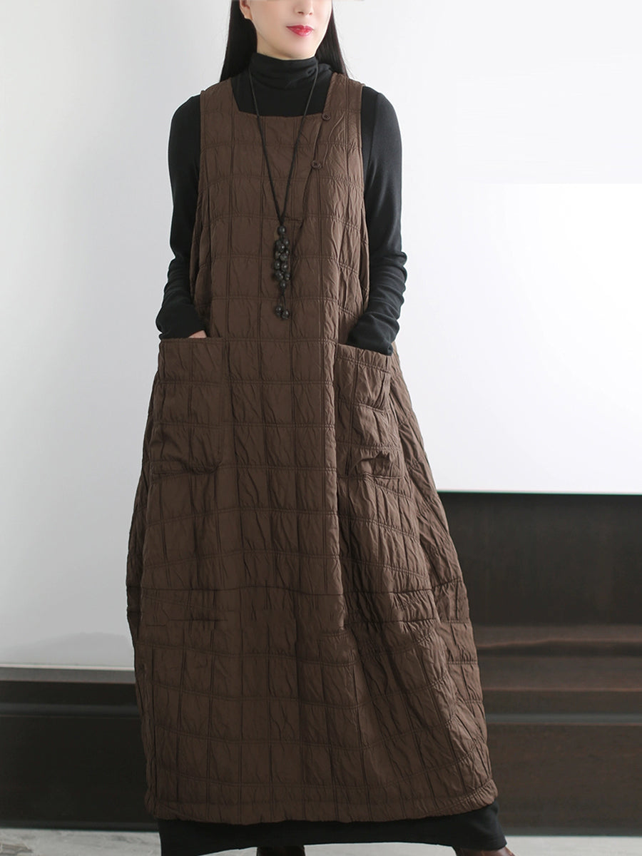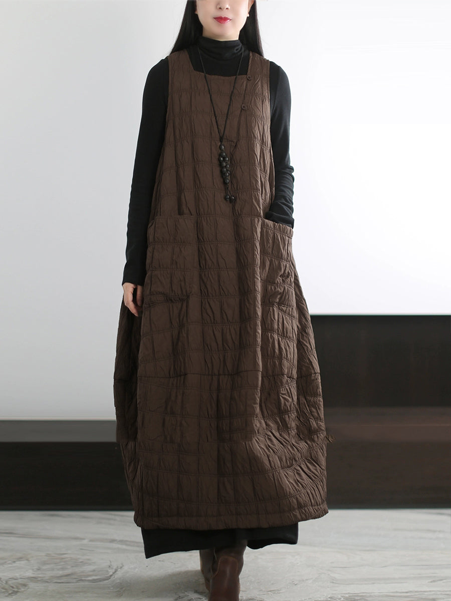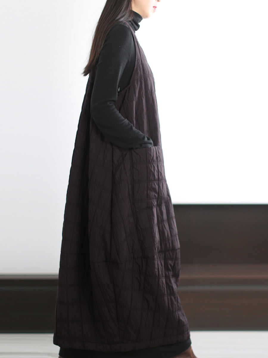 Vestido colete acolchoado casual feminino de cor lisa para o outono