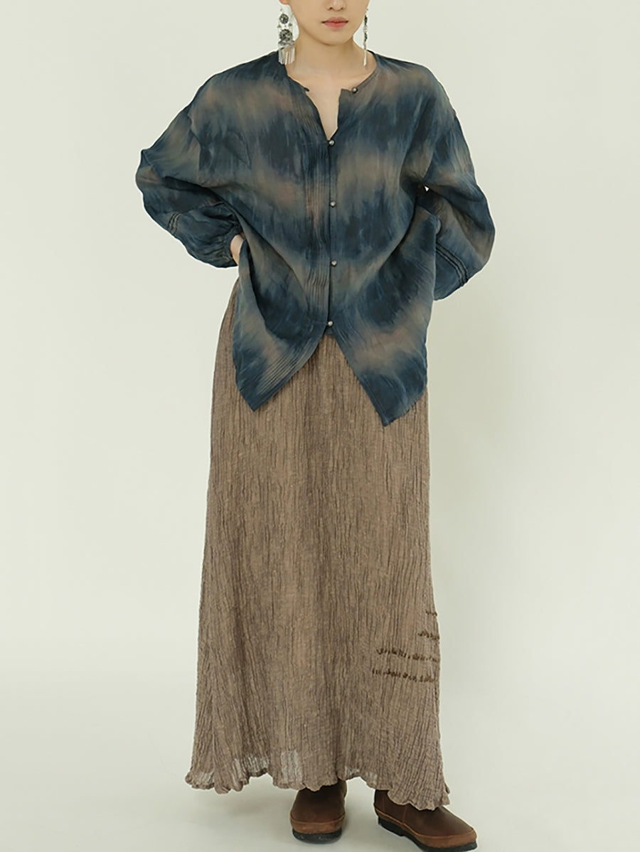 Camisa feminina de verão com estampa tie-dye e gola redonda 100% rami