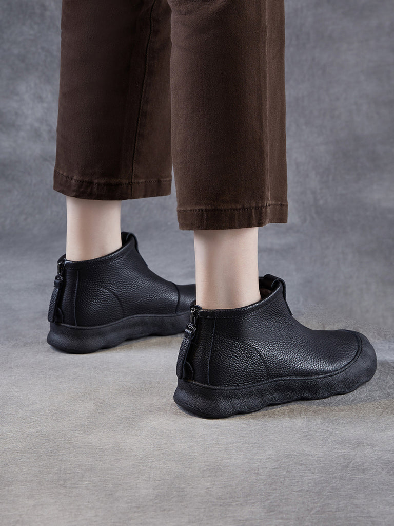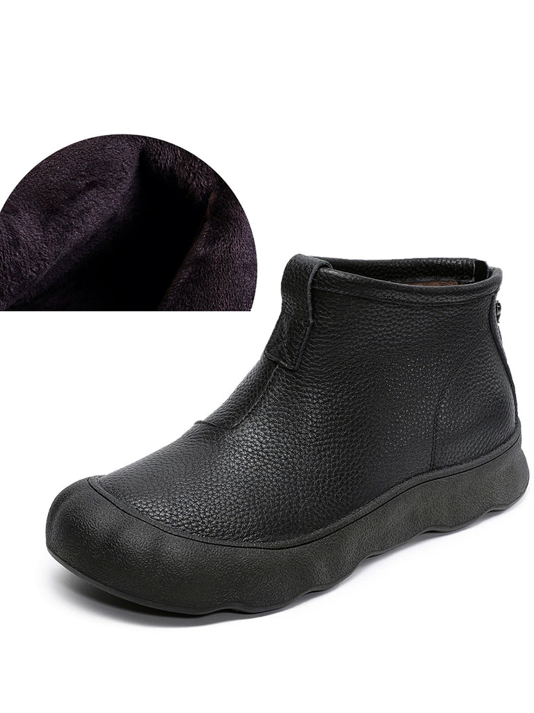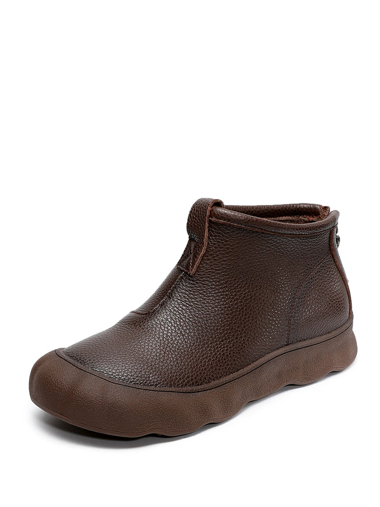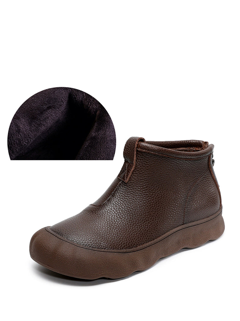Botas femininas vintage de inverno em couro legítimo até o tornozelo