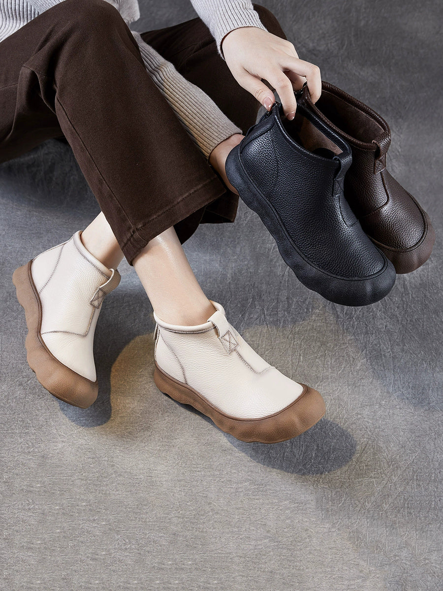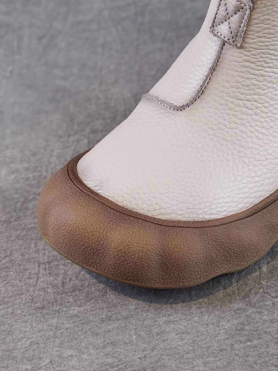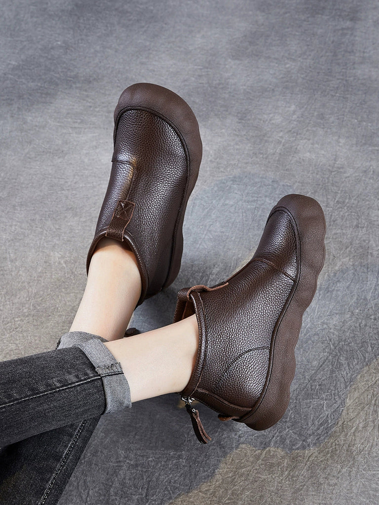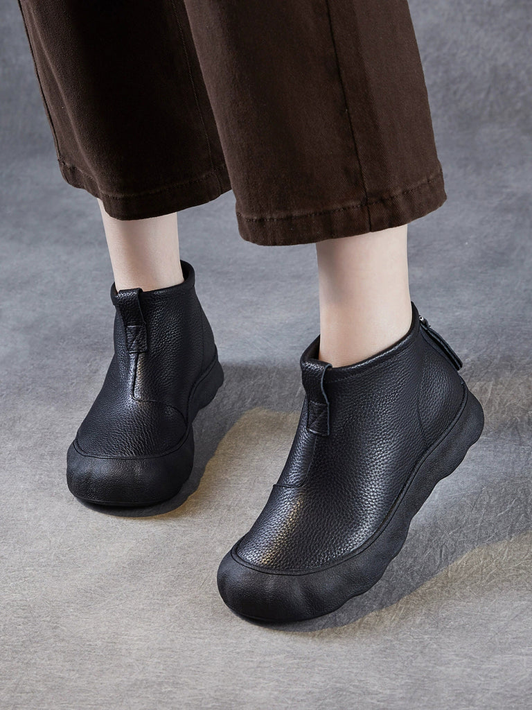 Botas femininas vintage de inverno em couro legítimo até o tornozelo