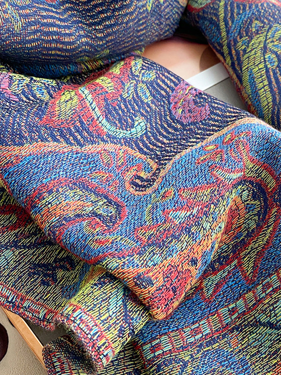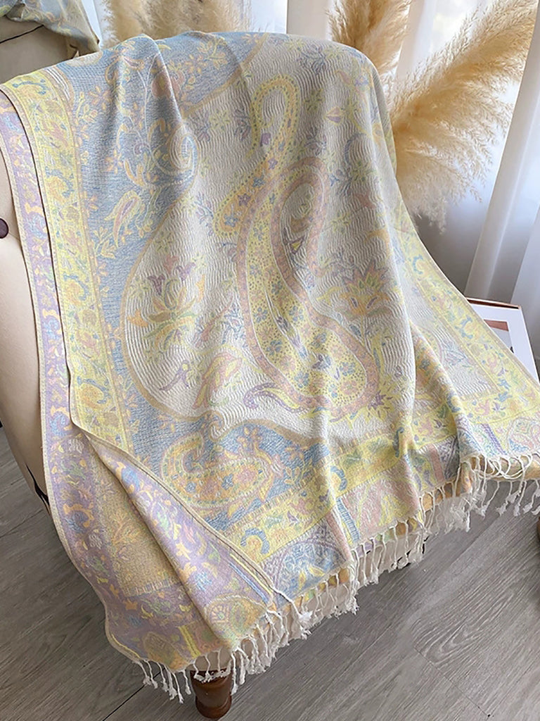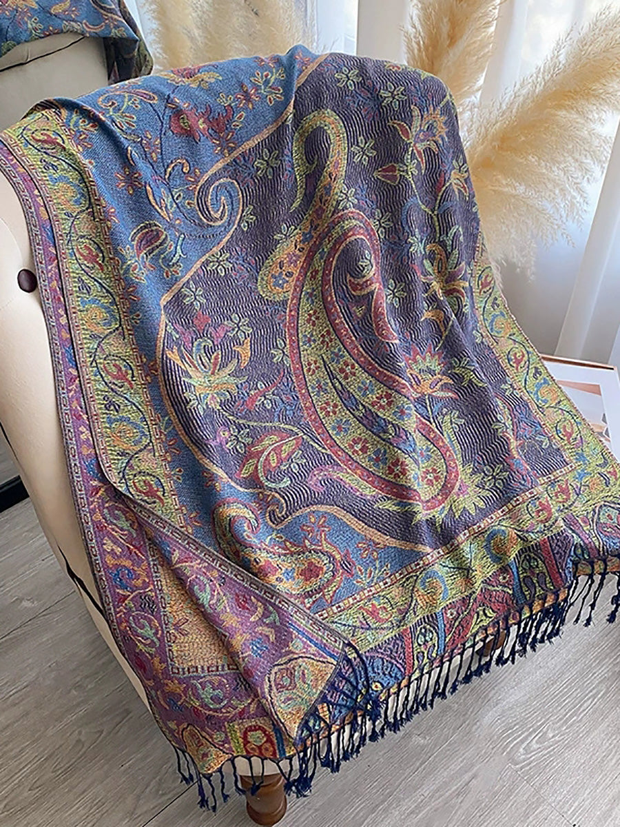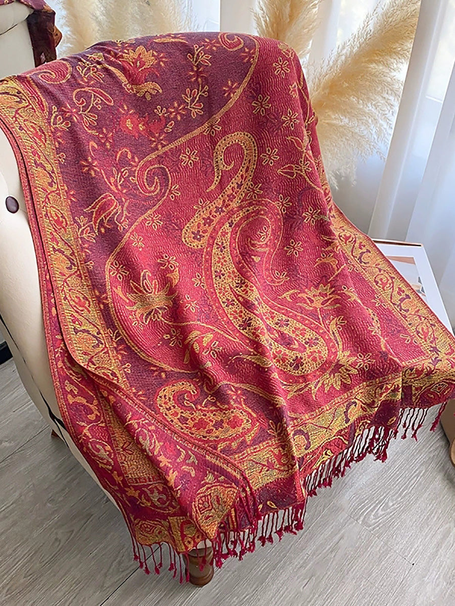Xale feminino de inverno com estampa floral jacquard e franjas