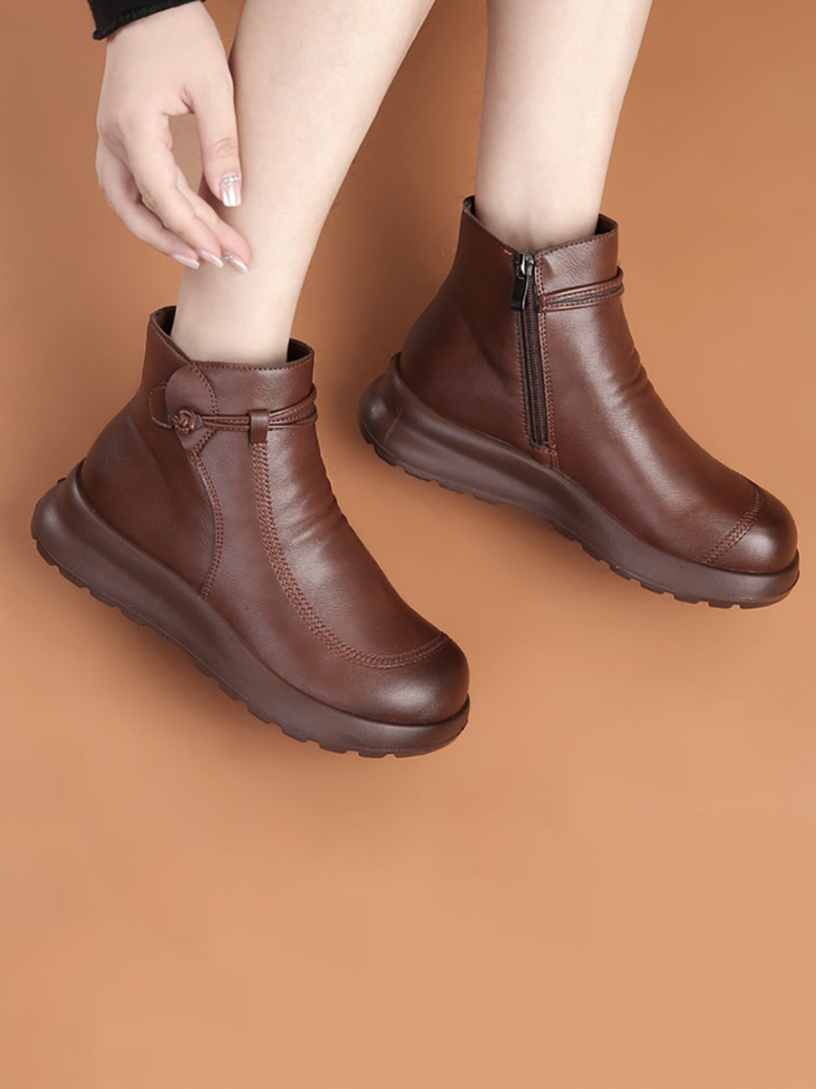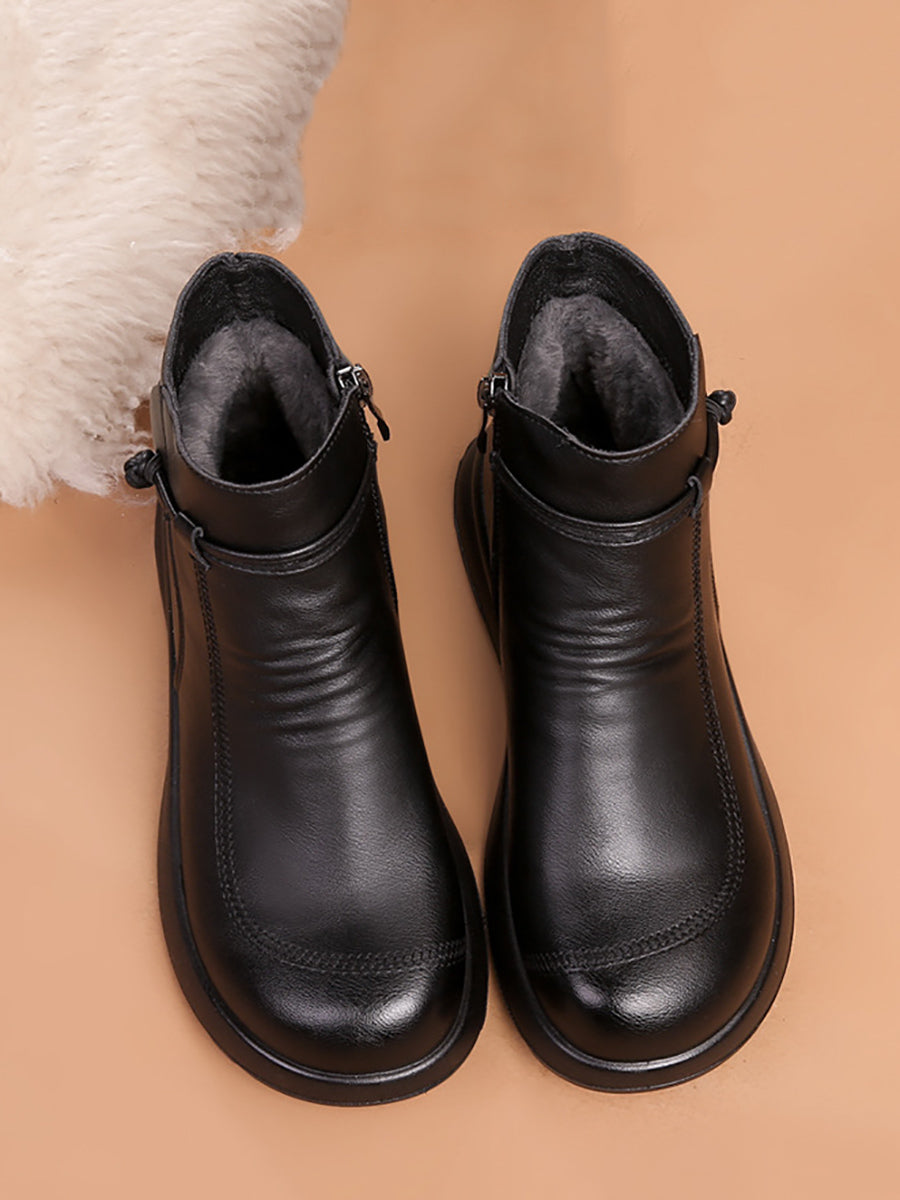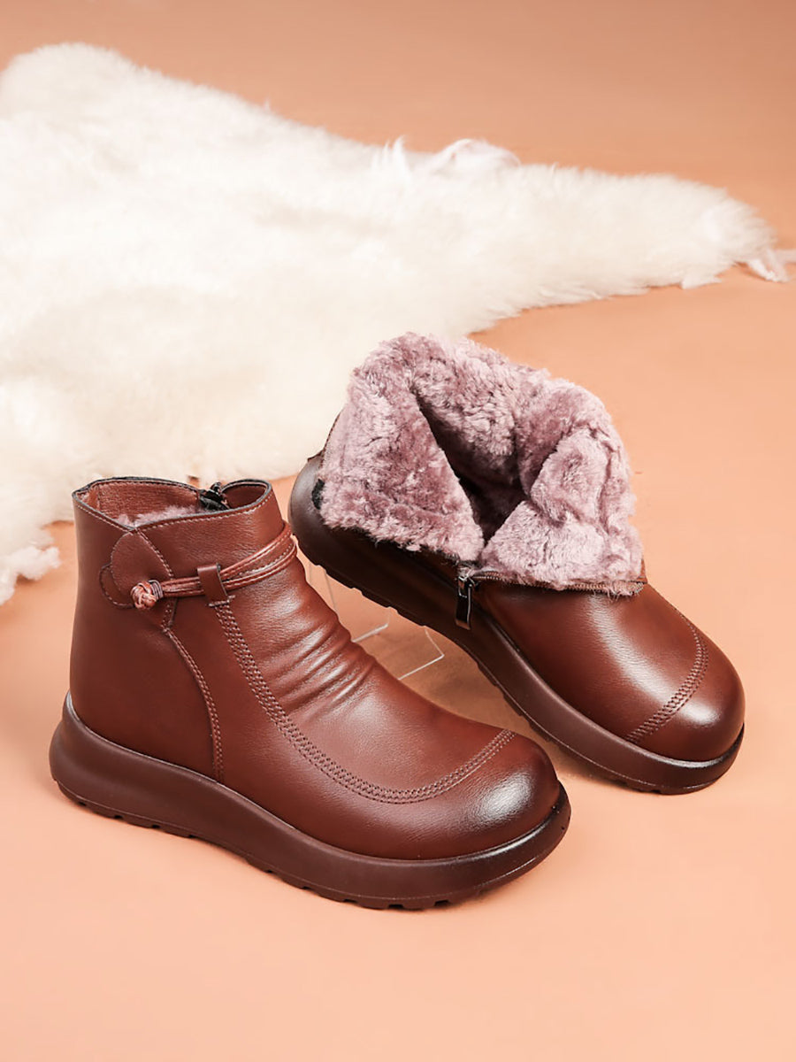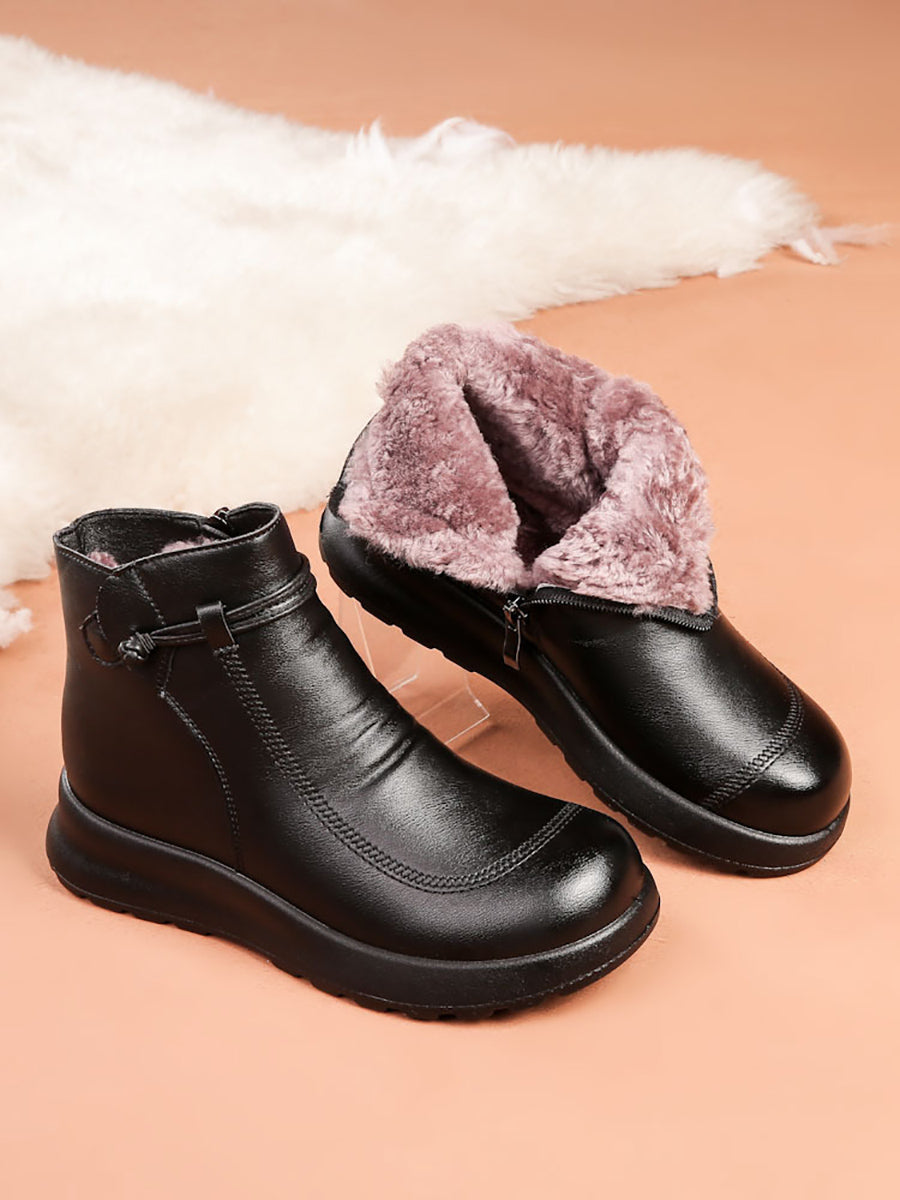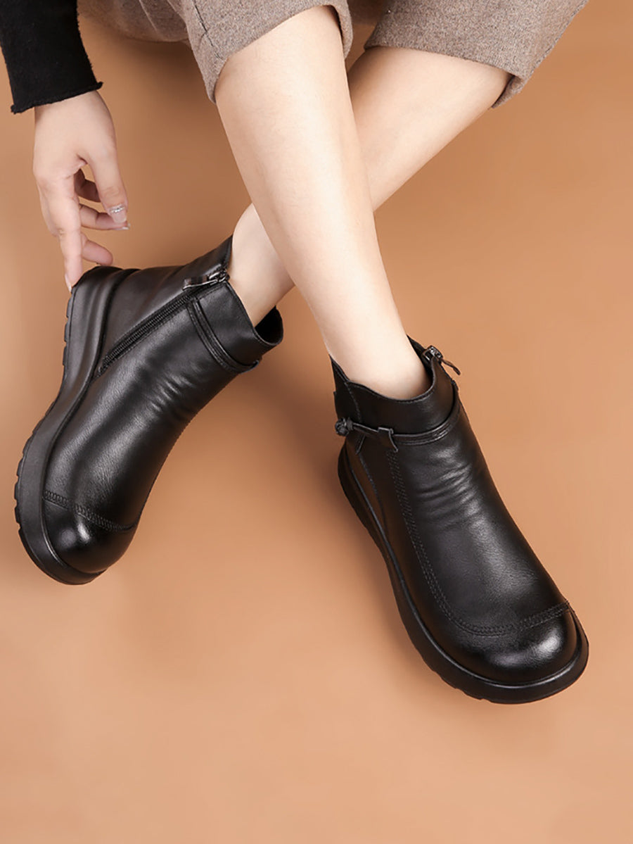 Botas de cano curto femininas de inverno em couro legítimo com forro de lã